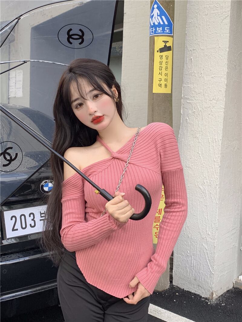 オータムスリムフィットセーター ショートシャツ トップス ロング 秋物 オフショルダー Xiaofeijia85877530868