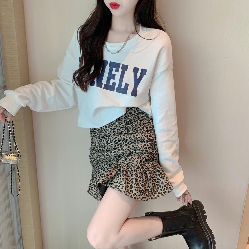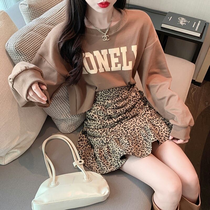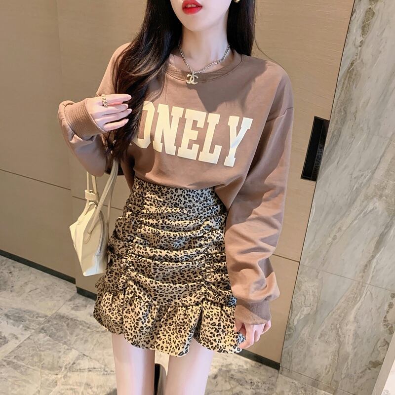 スタイルスカート オータムプリントセーター ハイウェストプリーツショート ロング かわいい 秋物 Xiaofeijia15569750982