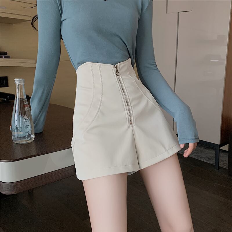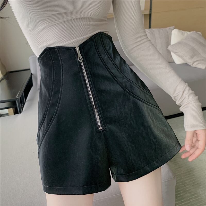 オータムウィンタースタイルハイウェストウェストジッパーレザーパンツ Aラインブーツ 靴 シューズ 秋物 冬物 Xiaofeijia67836244584