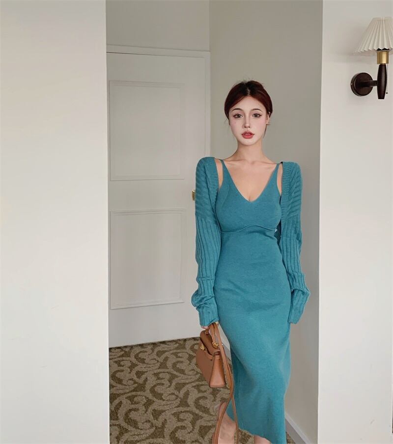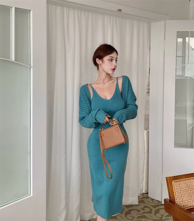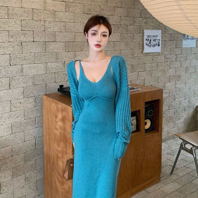 オータムニットスカート カーディガンスリーブドレス 秋物 Xiaofeijia56115691075