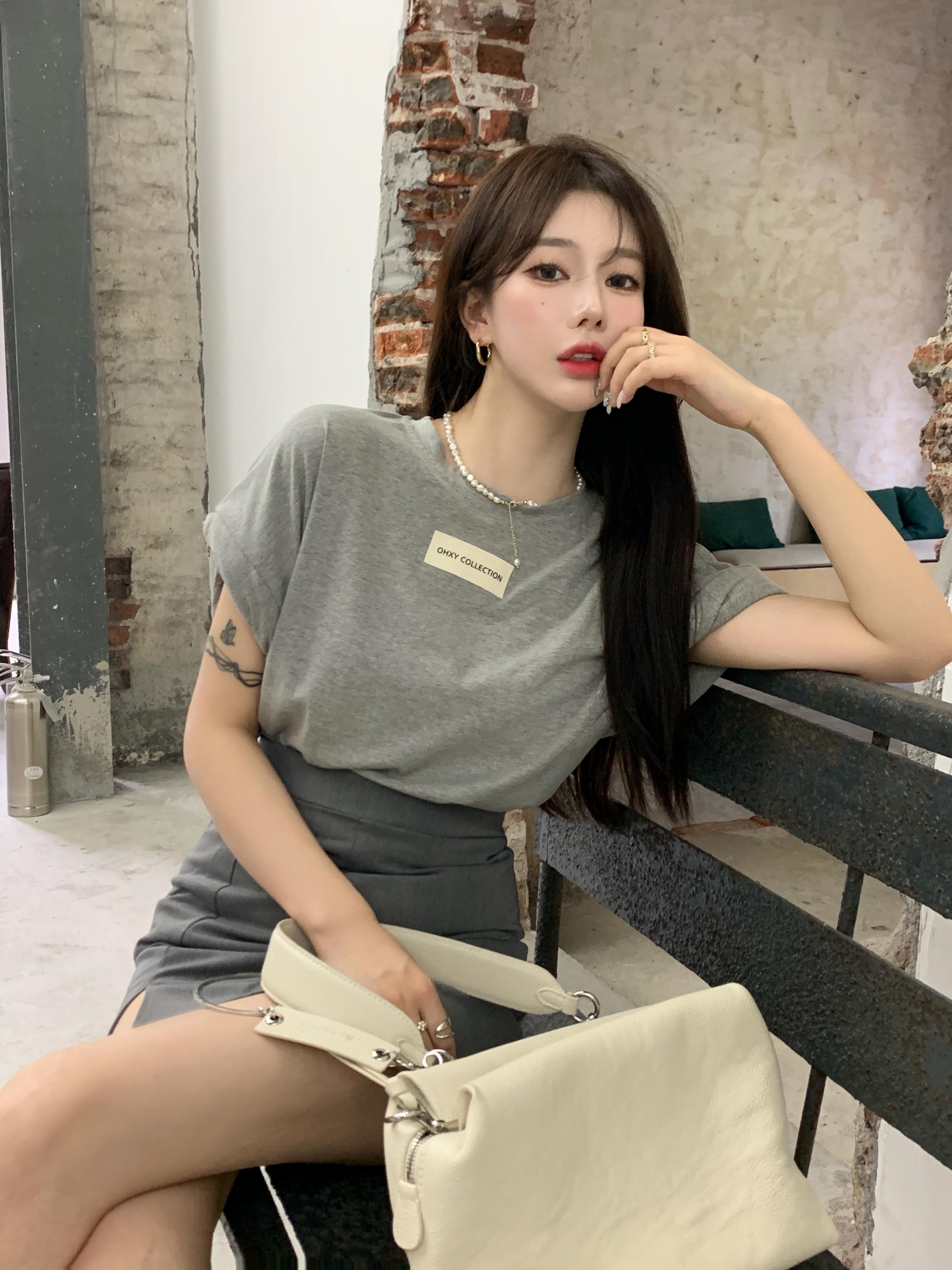 ルーズ薄手グレーTシャツ サマーラウンドネックトップス 夏物 Oネック Xiaofeijia99798419617