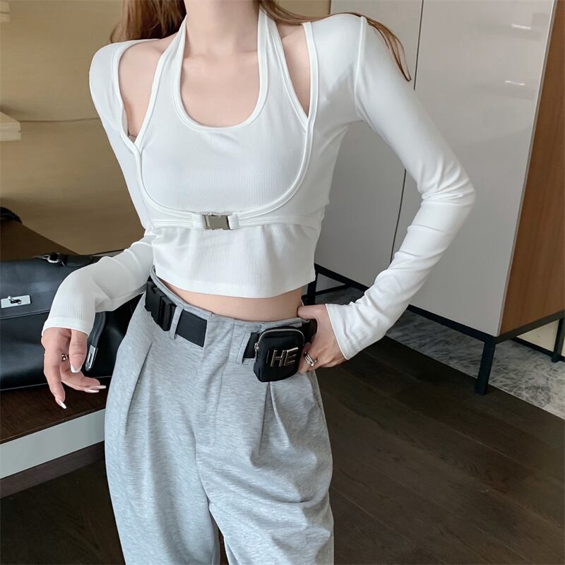 色:ホワイトトップ,グレーのパンツはベルトを送る