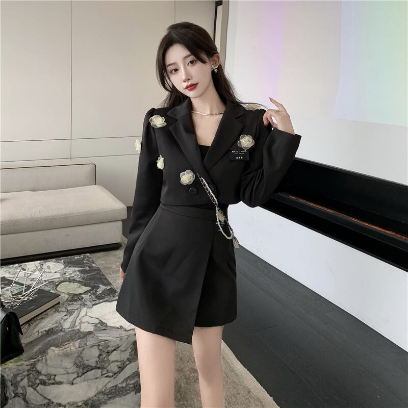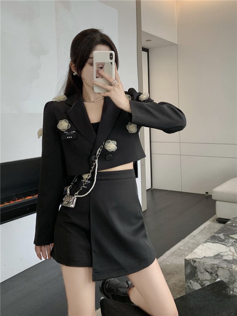 ショートオータムジャケット ルーズFlowerデザイン スカート ロング 秋物 フラワーデザイン Xiaofeijia59213598142