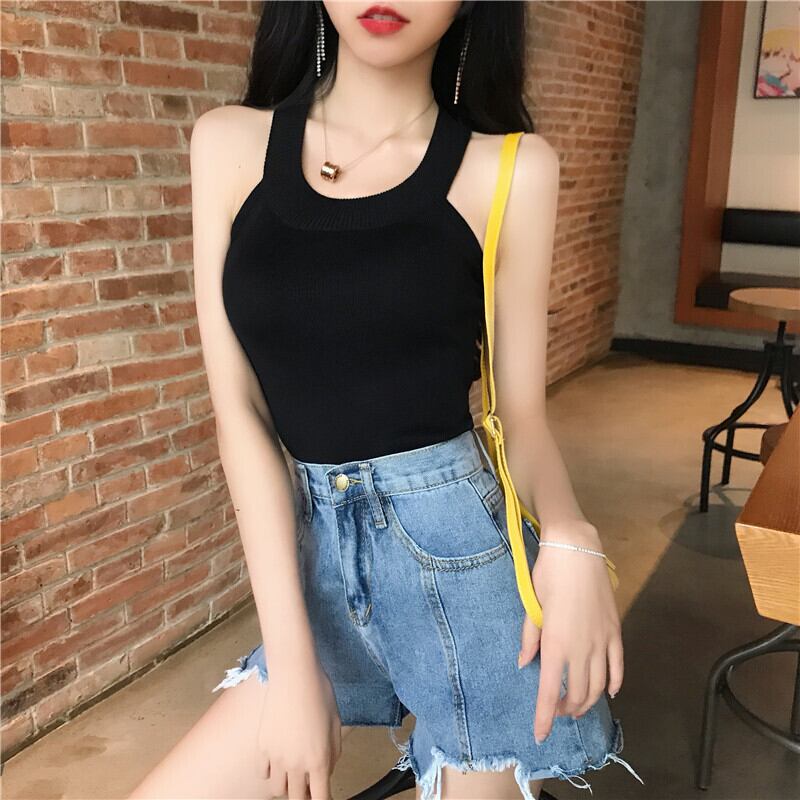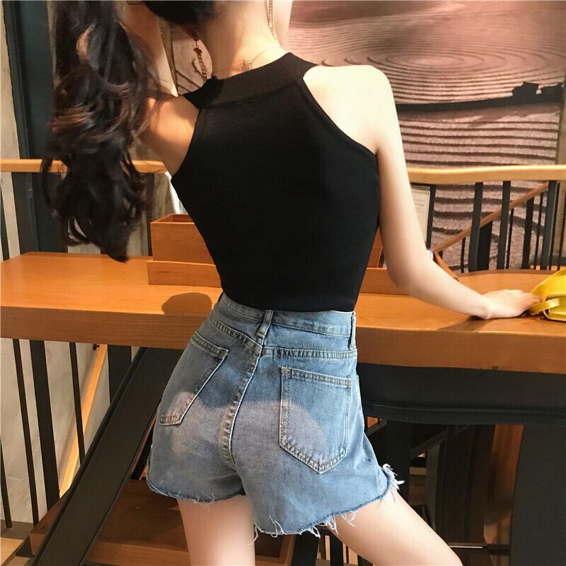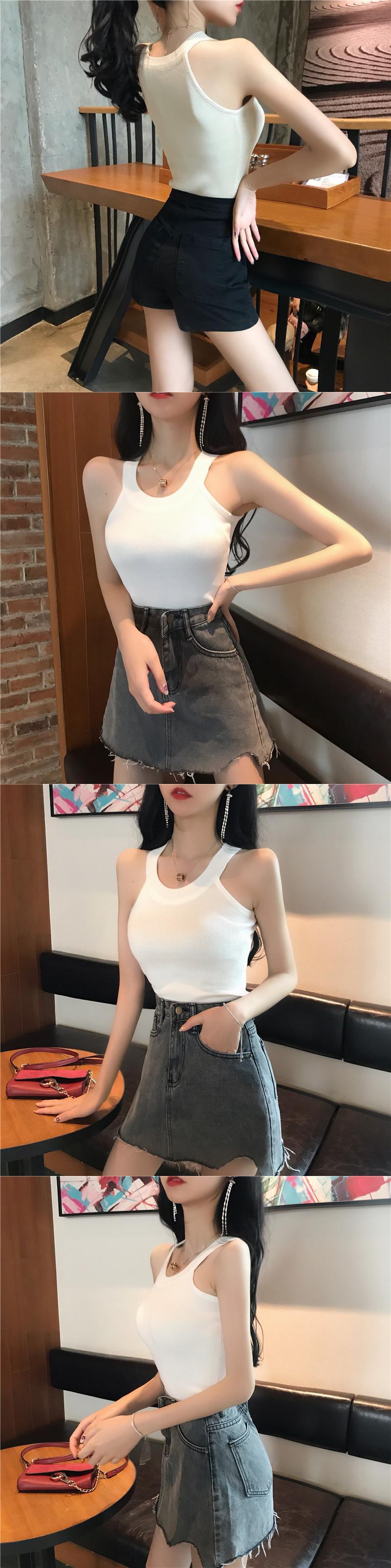 サマーバックスリムショートニットノースリーブトップス レッド 夏物 オフショルダー Xiaofeijia4297594519