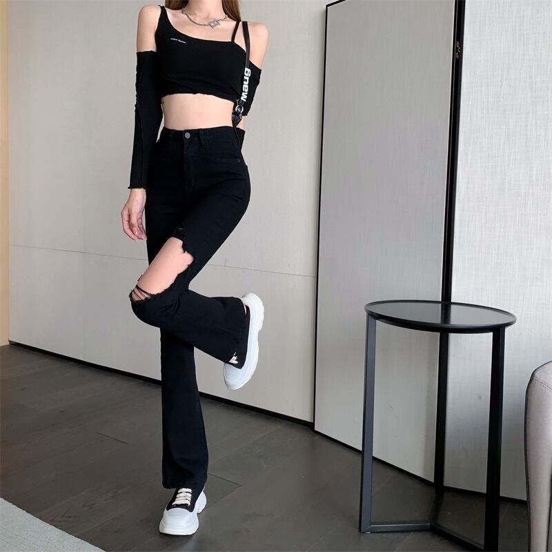 ブラックパンツ スキニージーンズ オータムハイウェストウェストロング レッド ストリート 秋物 Xiaofeijia22103199117