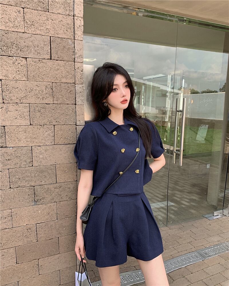 スタイルスリーブショートトップス ハイウェストウェストプリーツパンツ オータムレディース 秋物 Xiaofeijia37016609157