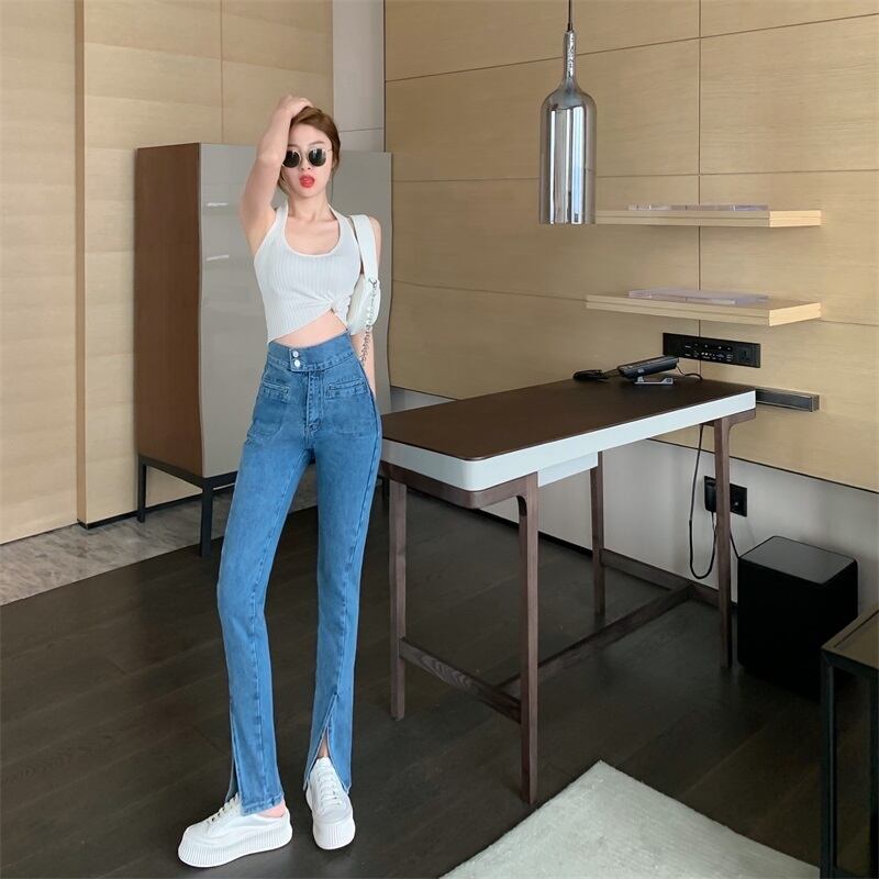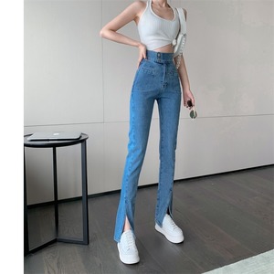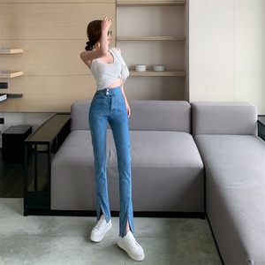 ジーンズ オータムハイウェストパンツ 薄手ブルー 秋物 Xiaofeijia75910681028