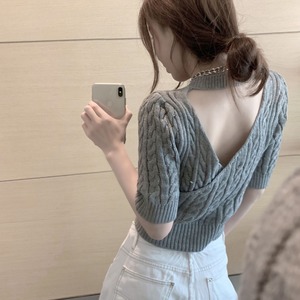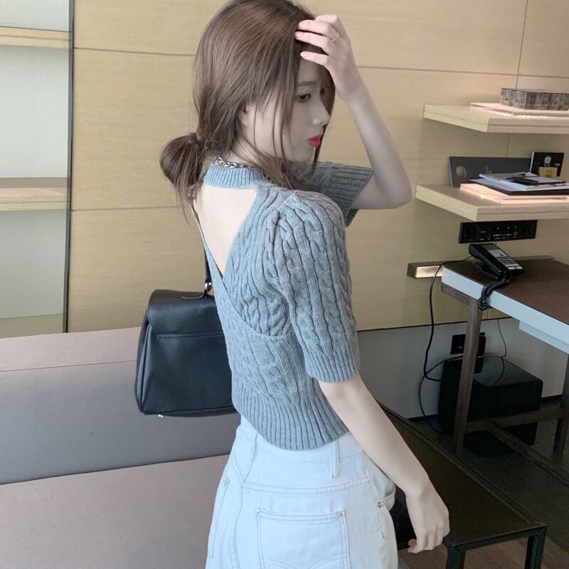 スタイルホルターニットセーター レディーススリムショートラウンドネックプルオーバー Oネック Xiaofeijia49213503458