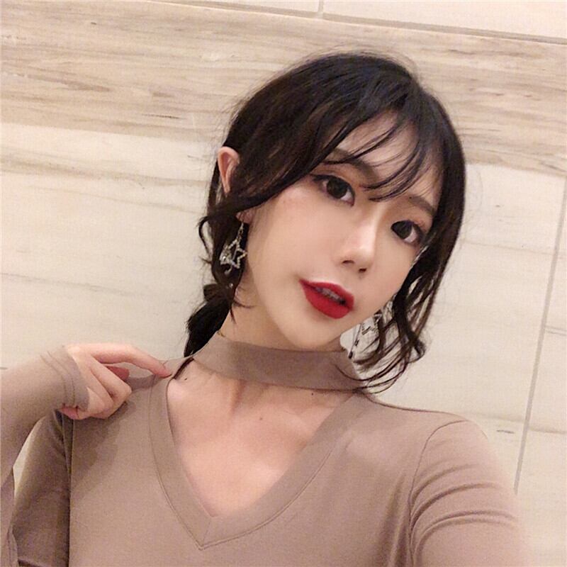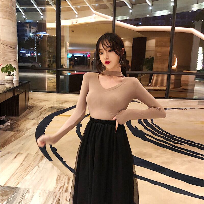 オータムVネックTシャツ ソリッド カラートップス ロング 秋物 ソリッドカラー Xiaofeijia73645191584