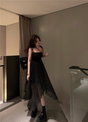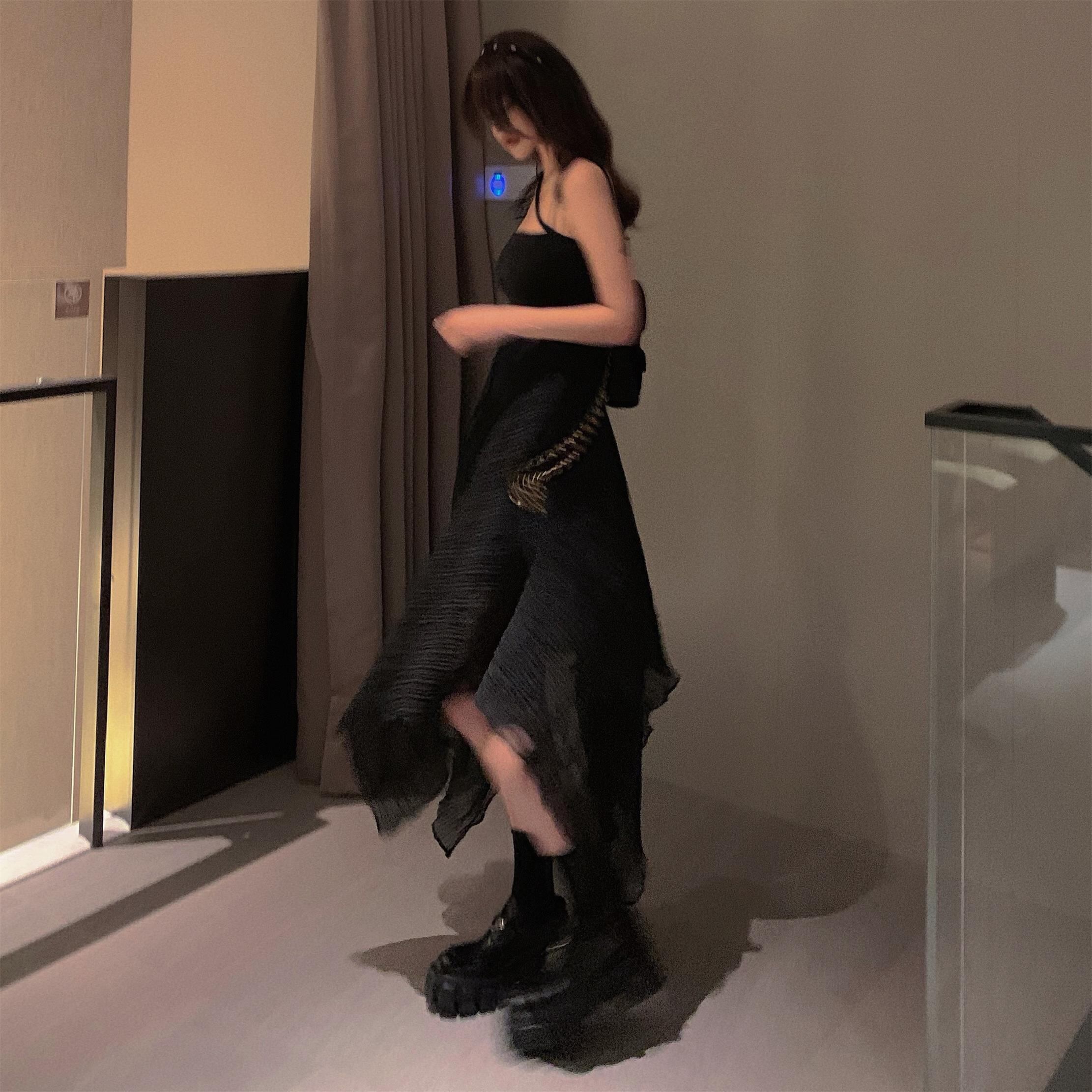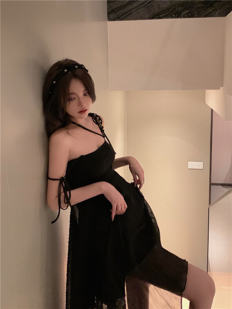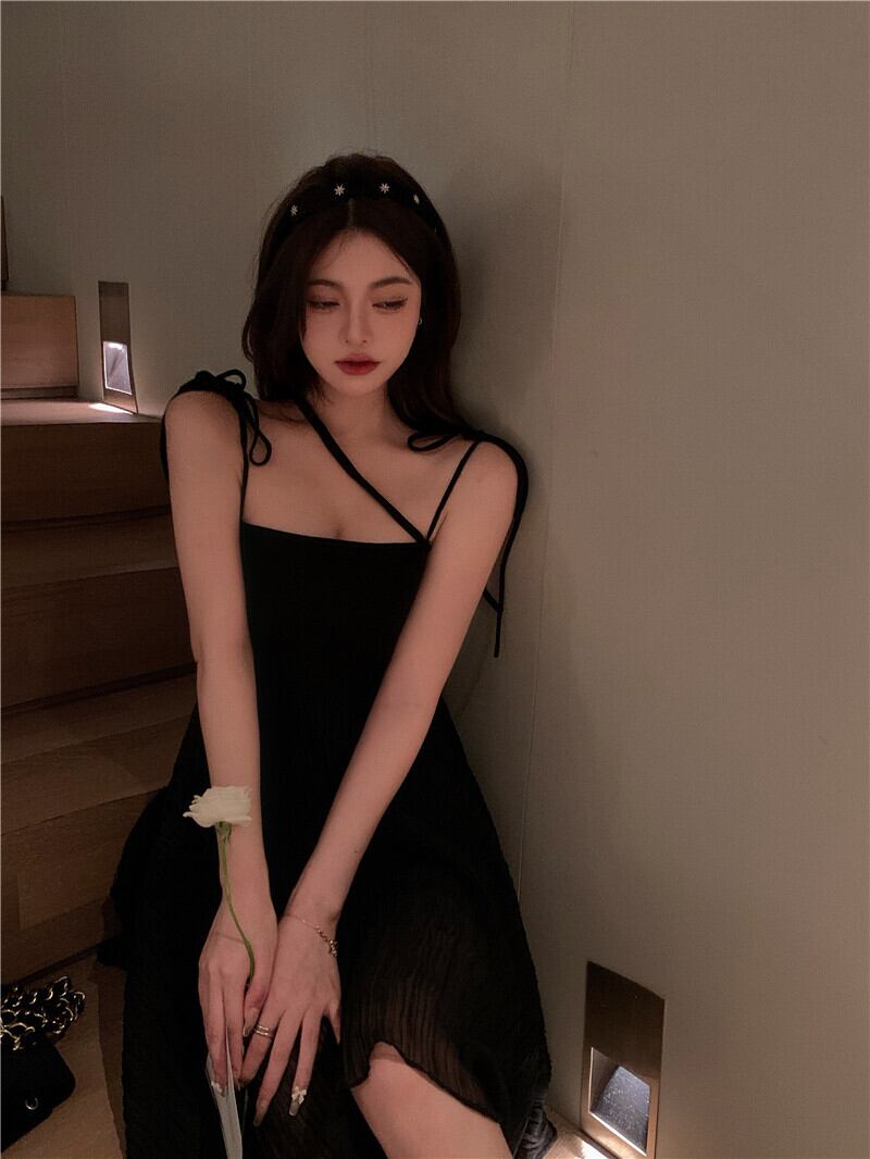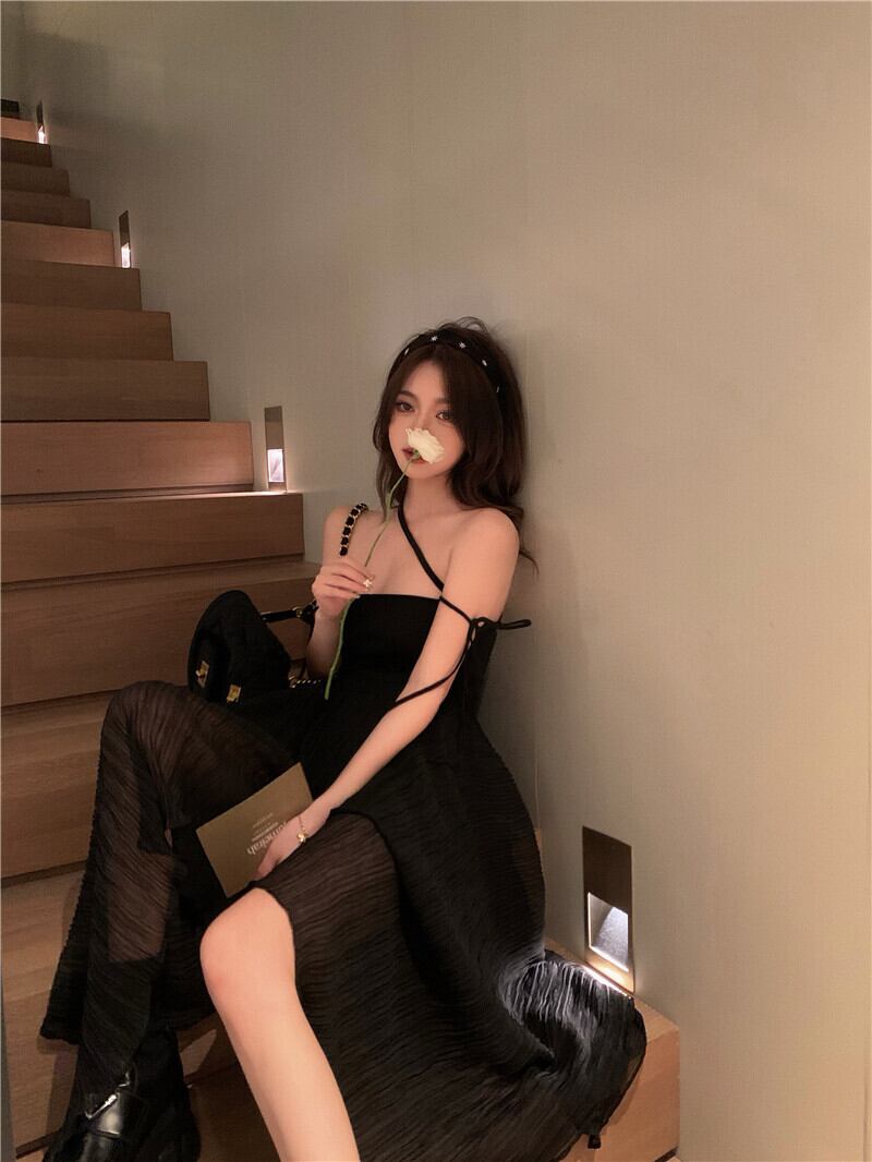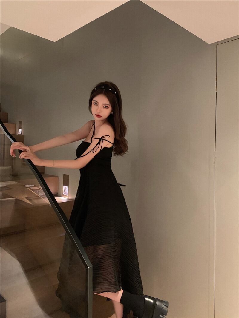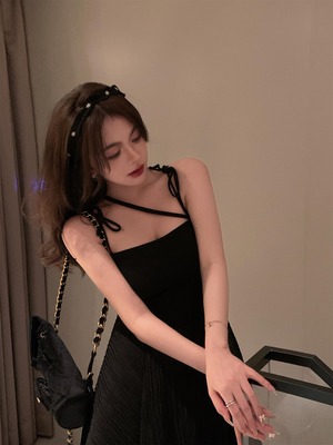 スタイルブラックドレス リボンウェストプリーツスカート オータムレディース 秋物 Xiaofeijia92671072956