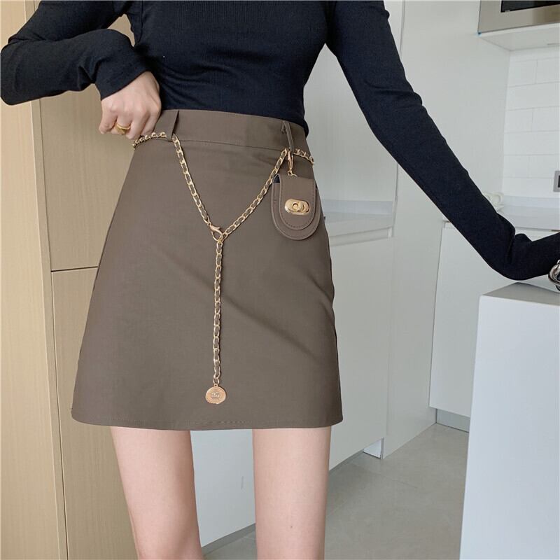 チェーン ベルト スカート ハイウェスト薄手レザー ウィンター 冬物 ハーネス Xiaofeijia66898837351