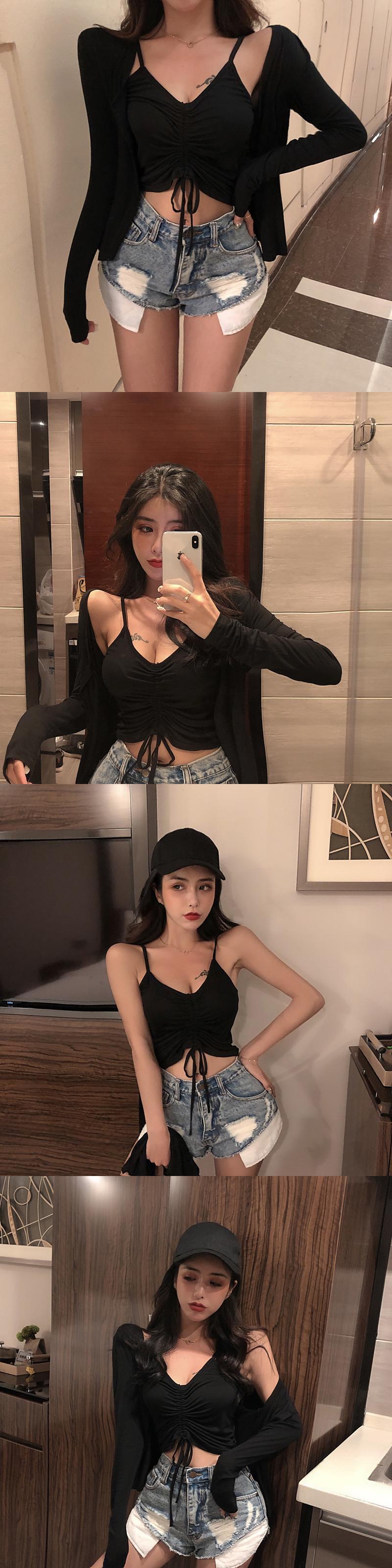 Vネックスリムギャザーカーディガンショートコート ロング Xiaofeijia25765780715