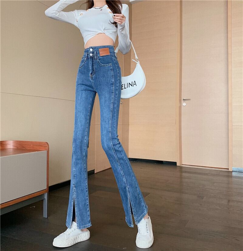 ジーンズ ハイウェストウェストスキニーパンツ レッド Xiaofeijia48733715041