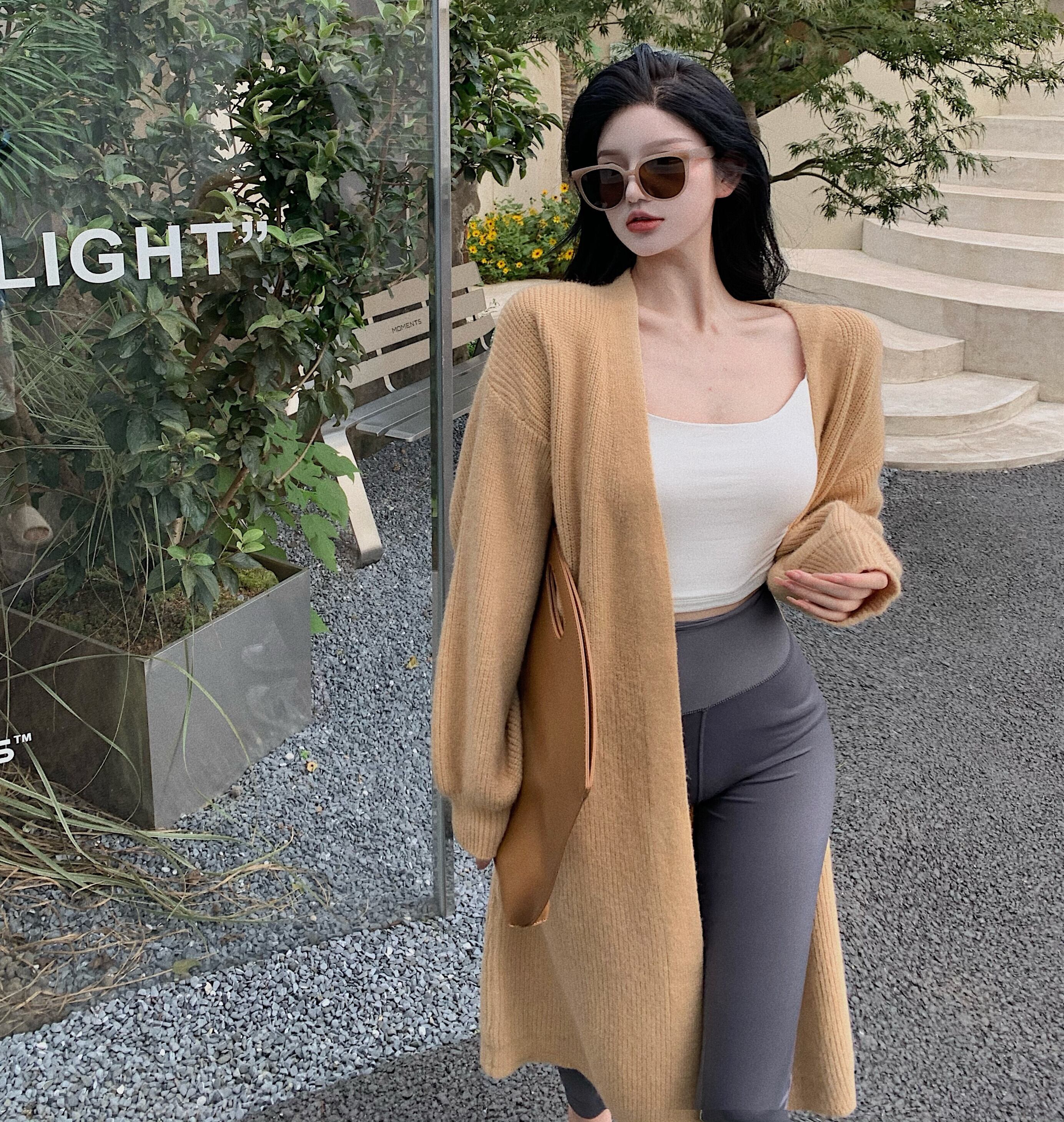 Vネックセーター レディースルーズカーディガンジャケット オータムトップス ロング 秋物 Xiaofeijia77162228257