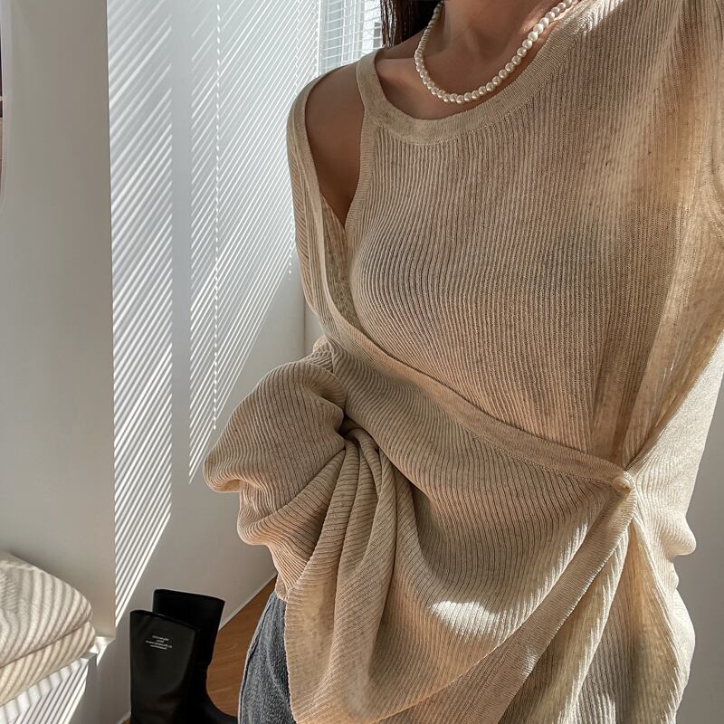 ルーズTシャツ レディースニット ロング Xiaofeijia91259942594