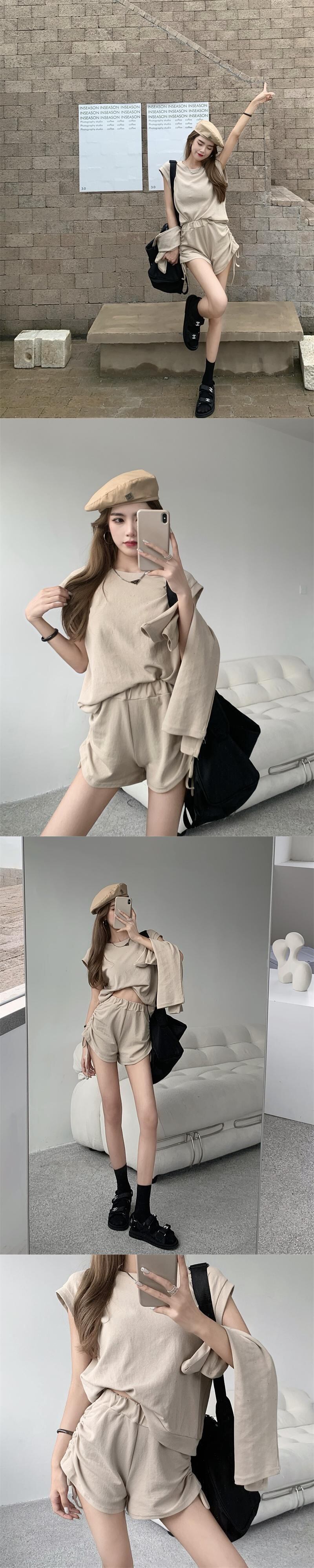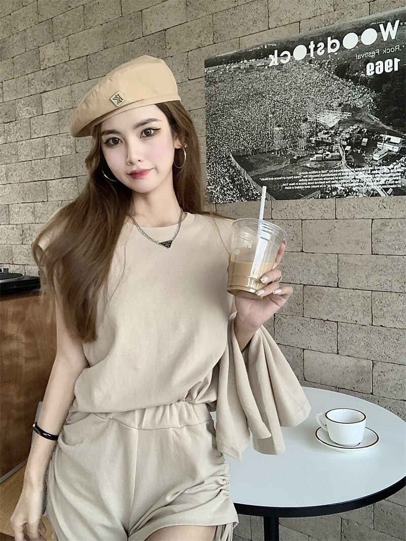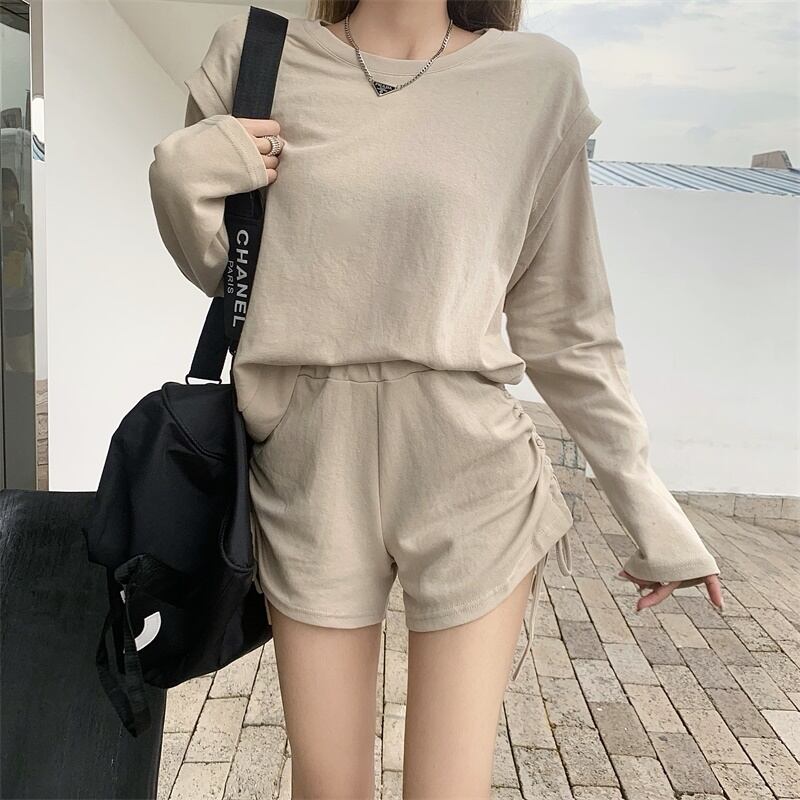 オータムスリーブトップス ハイウェストウェストギャザーショーツ カジュアル 秋物 ブルマー Xiaofeijia54423571271