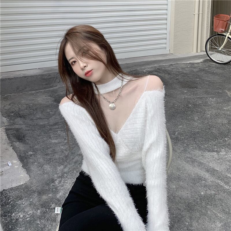 メッシュホルターウールブラウス ロング ソリッドカラー ステッチ Xiaofeijia79465706939