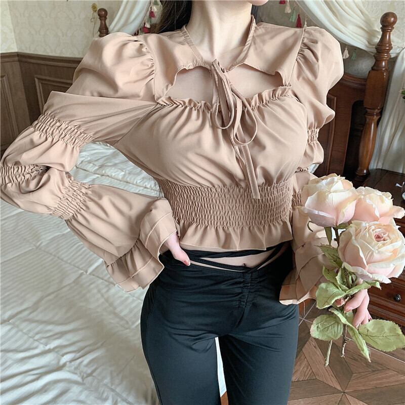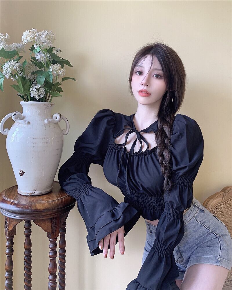 スタンダードスリーブスリムトップス レトロ Xiaofeijia36914451414