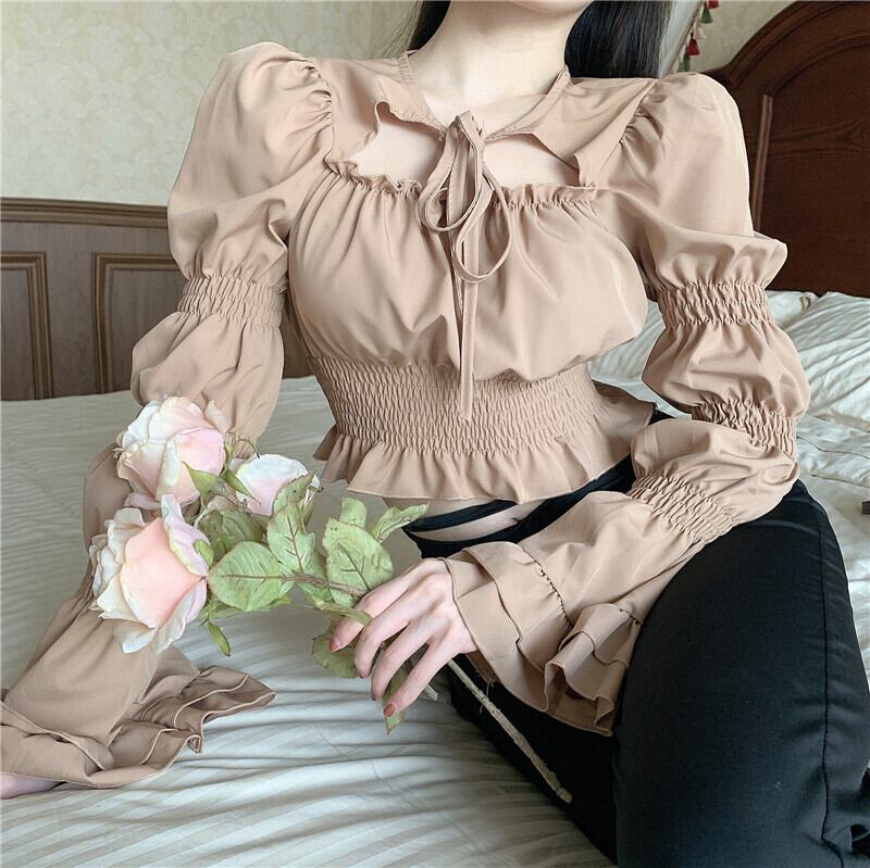 色:ブラックパフスリーブ,茶色のパフスリーブ