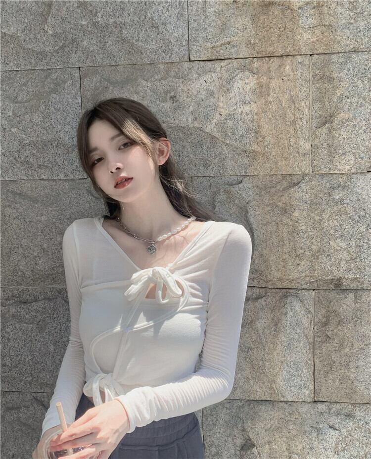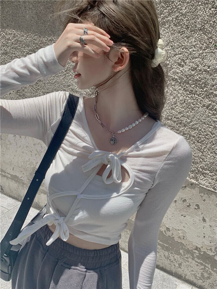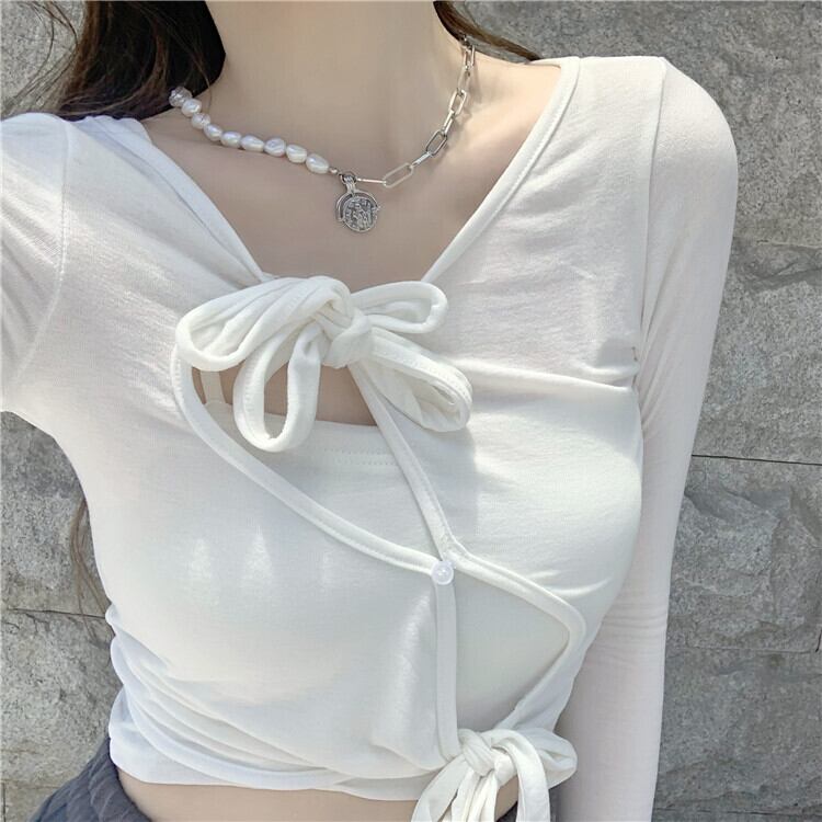 ホワイトバンドTシャツ カーディガンショートオータムトップス ロング 秋物 ピュア Xiaofeijia79331177022