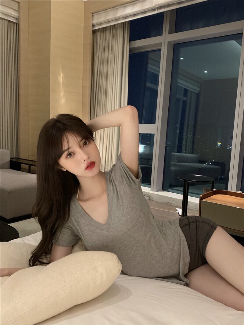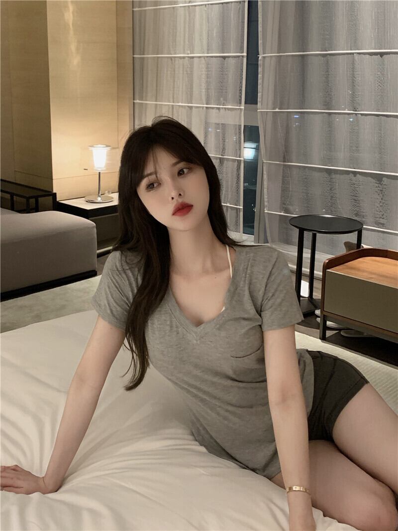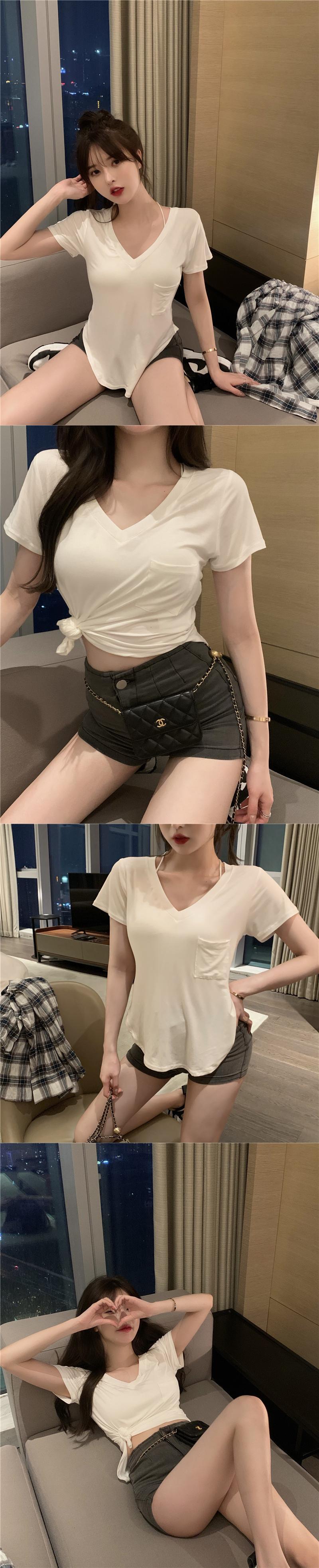 Tシャツ シャツ レディースサマールーズカジュアルVネックトップス 夏物 ピュア Xiaofeijia73693972643