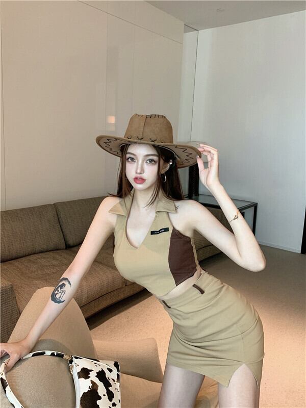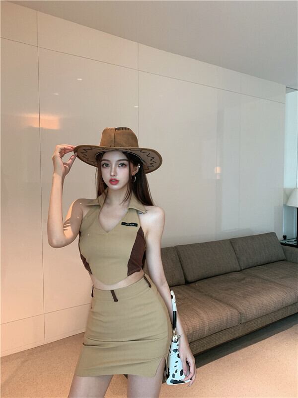 スタンダードカラーホルターハイウェストウェストスカート サマー レトロ 大人ガーリー スウィート キュート カジュアル 夏物 Xiaofeijia65380040474