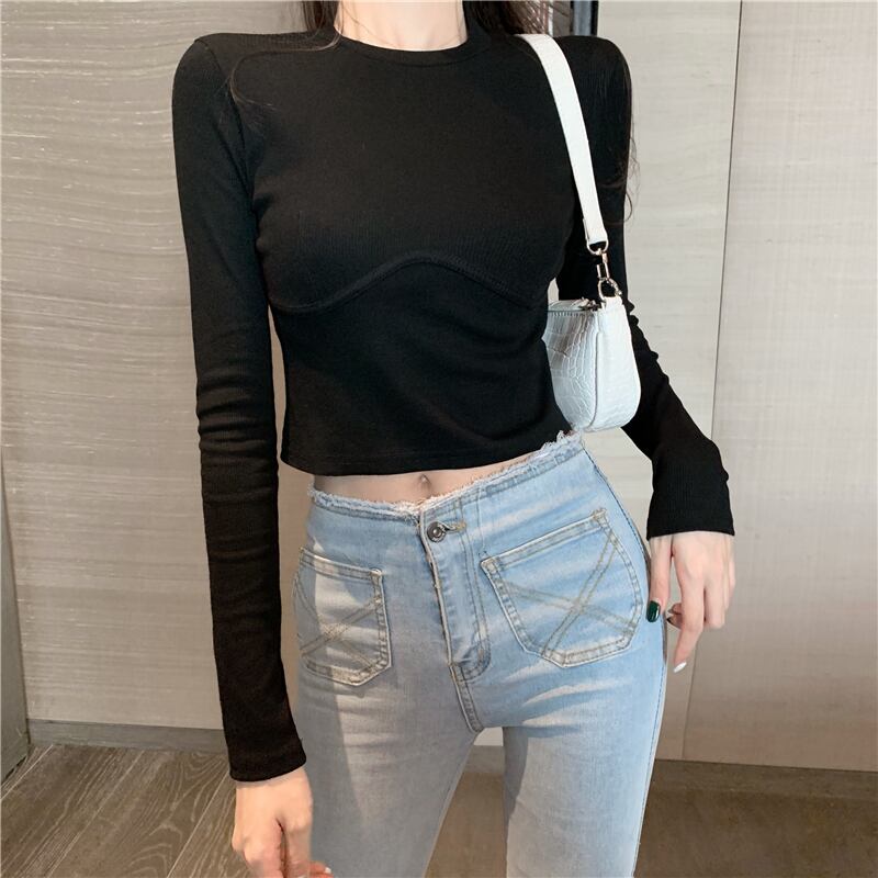 ホワイトTシャツ シャツ オータムスリムクロップドショートトップス 薄手 ロング 秋物 ヨーロピアン Xiaofeijia98912468615