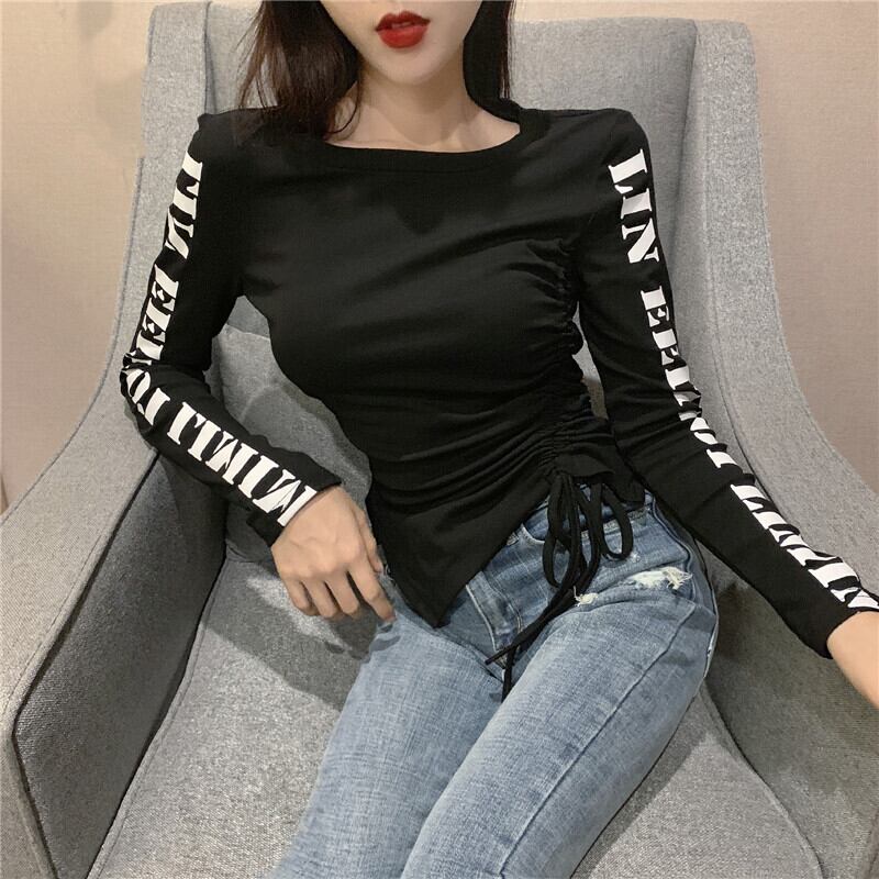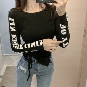 プリントTシャツ スリットギャザーショートトップス オータム ロング レッド 秋物 Xiaofeijia4884679107