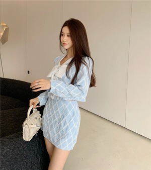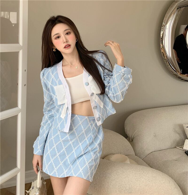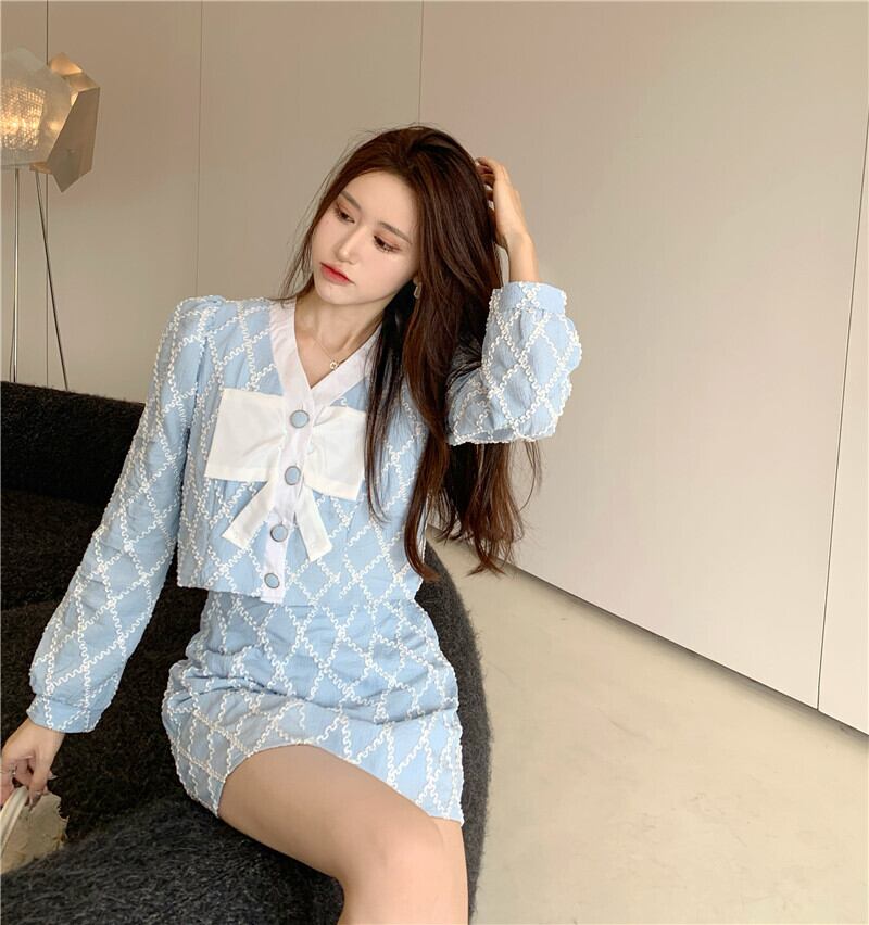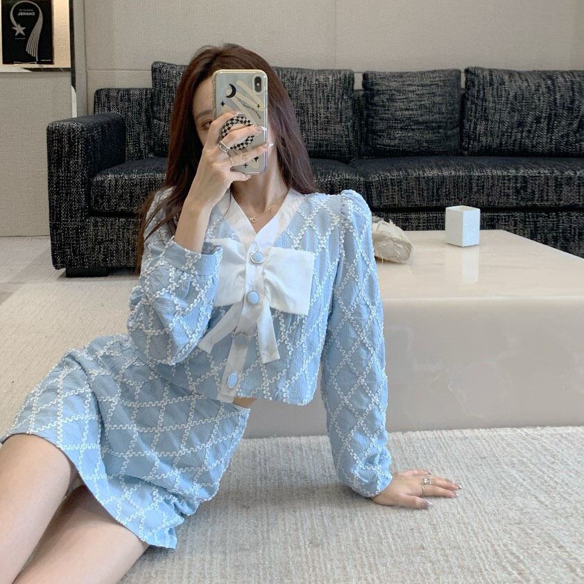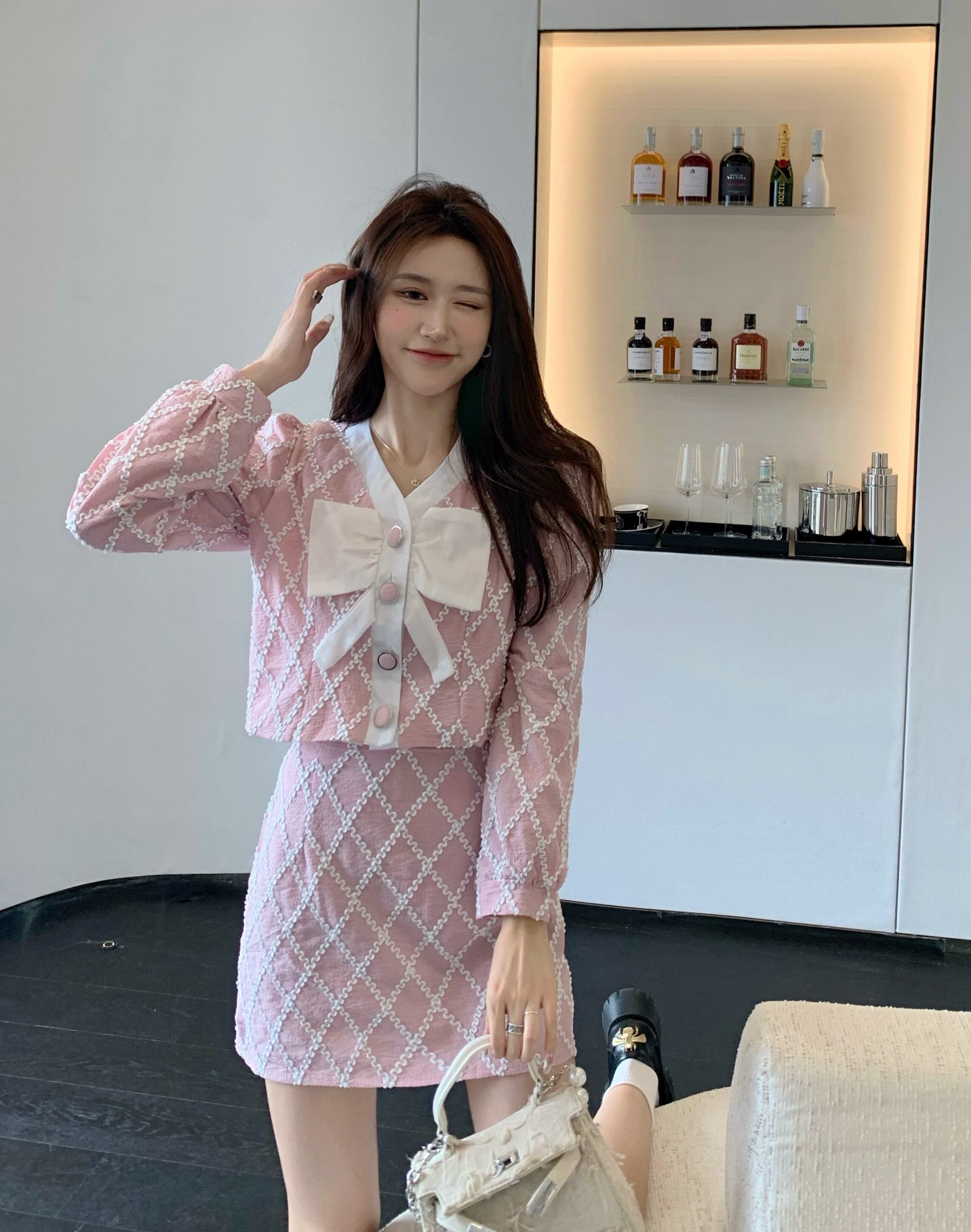 ショートオータムスタイルカラーリボンジャケット スカート レディース 秋物 Xiaofeijia4283558930