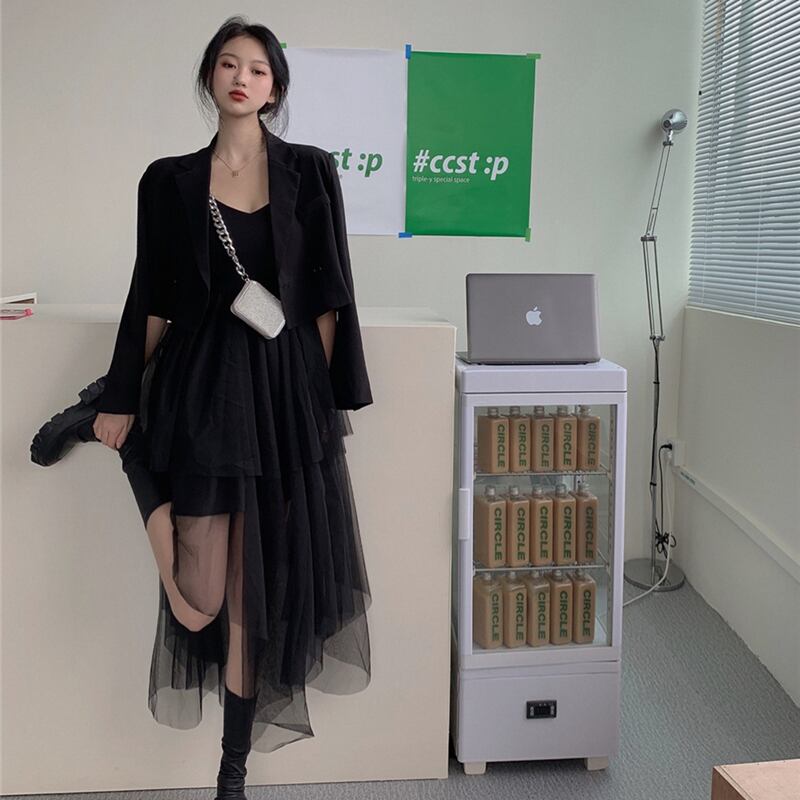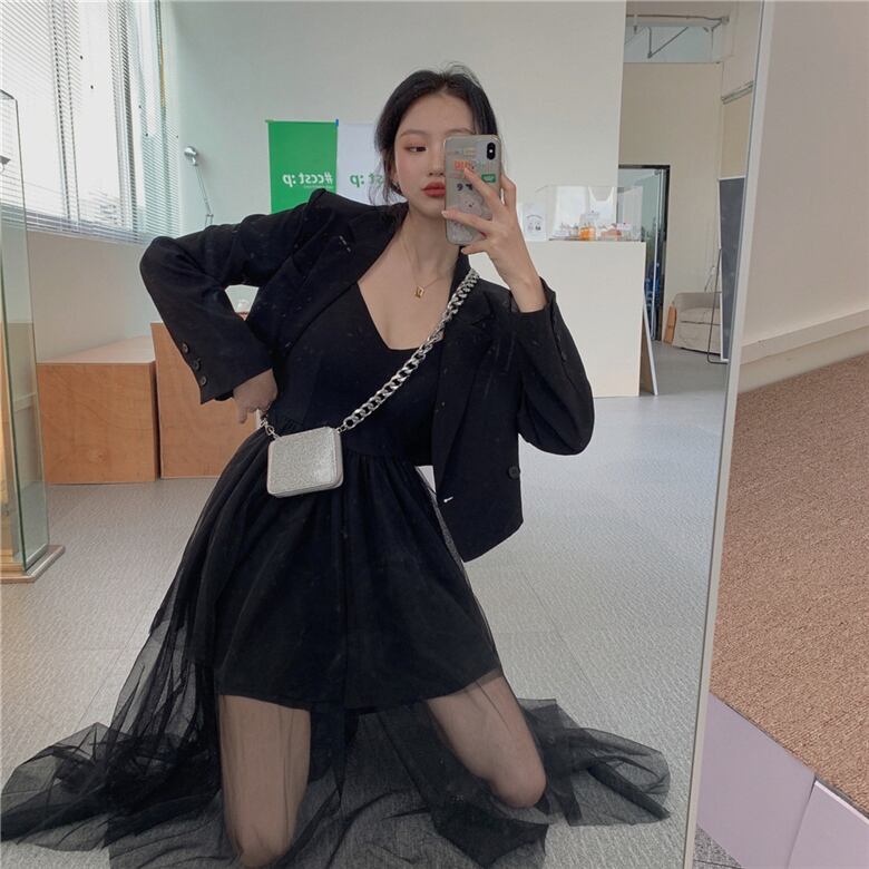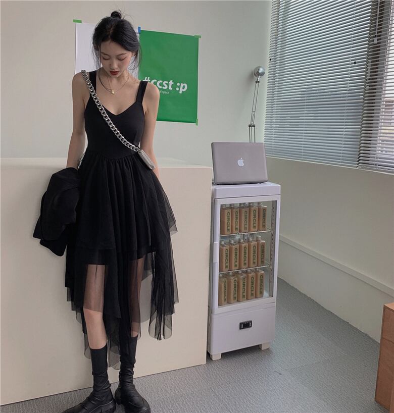 ダークメッシュVネックドレス ルーズショートオータム 大人ガーリー スウィート キュート カジュアル 秋物 Xiaofeijia52941128038