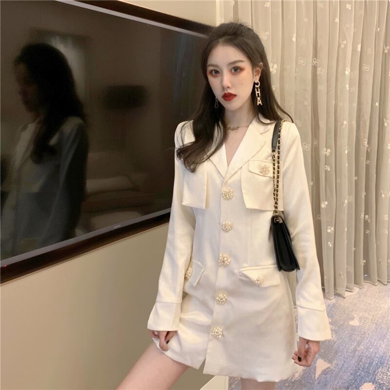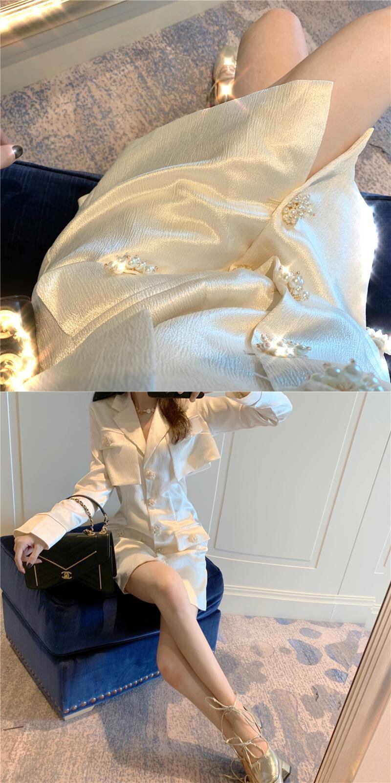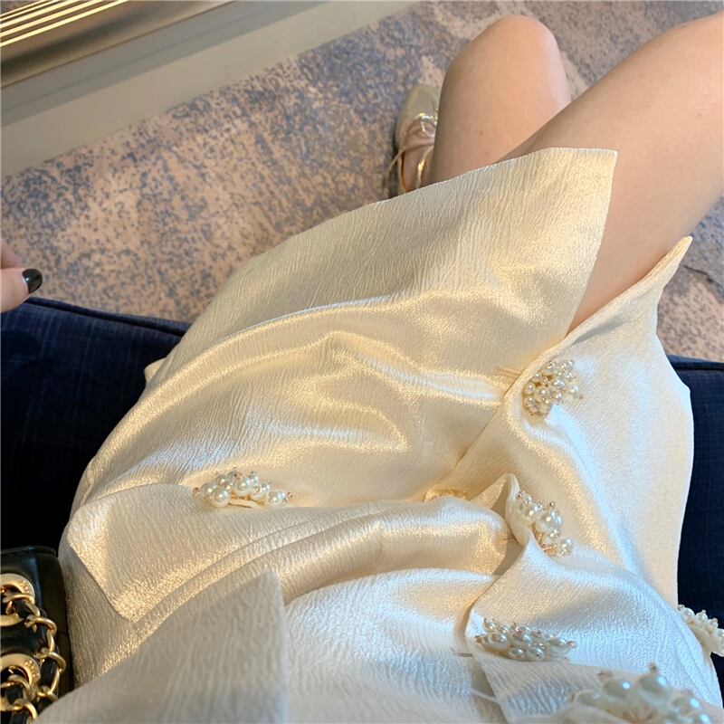 サテン長袖スリーブカーディガンショートジャケット スリムドレス オータム ロング 秋物 スリムヒップ Xiaofeijia45968669700