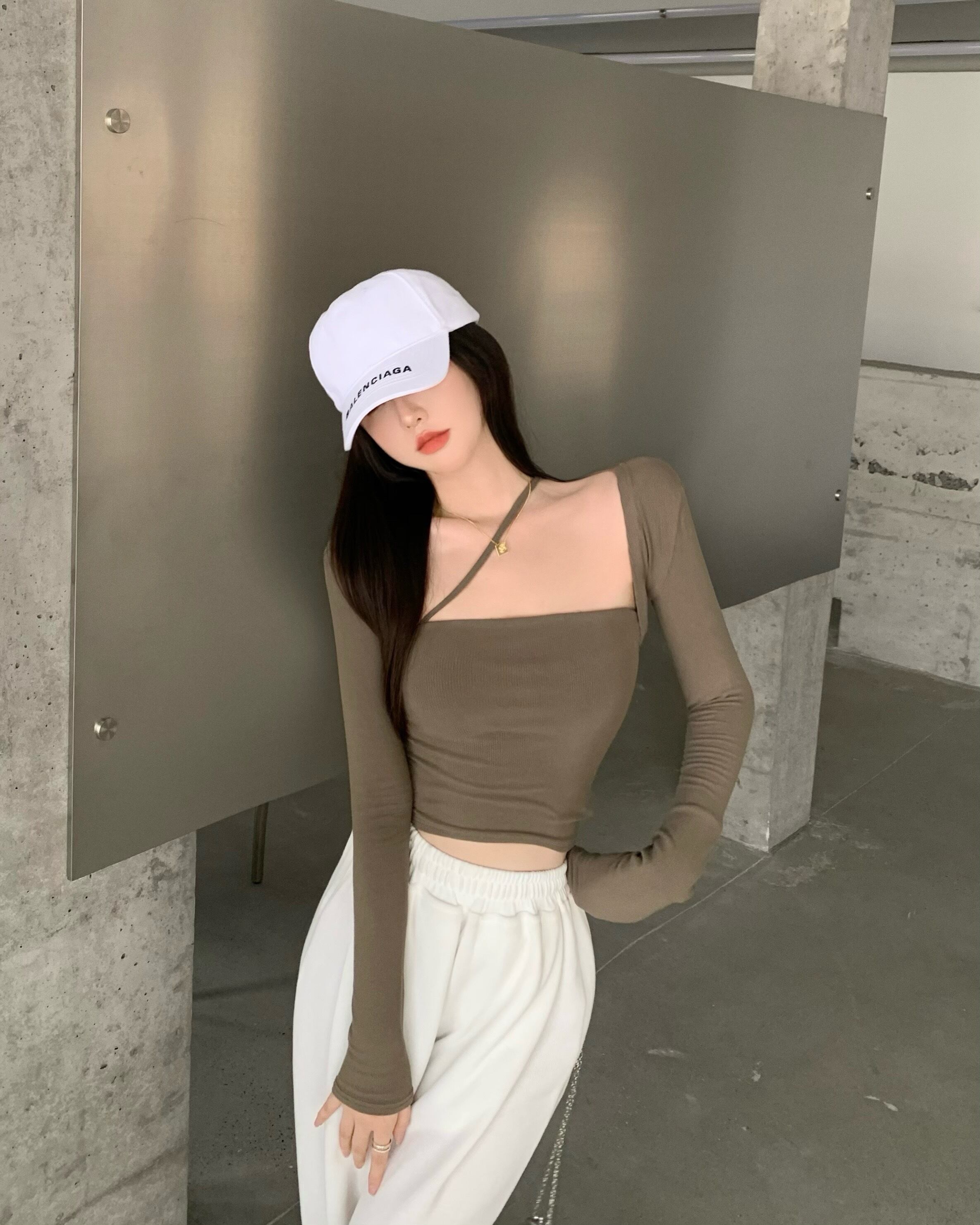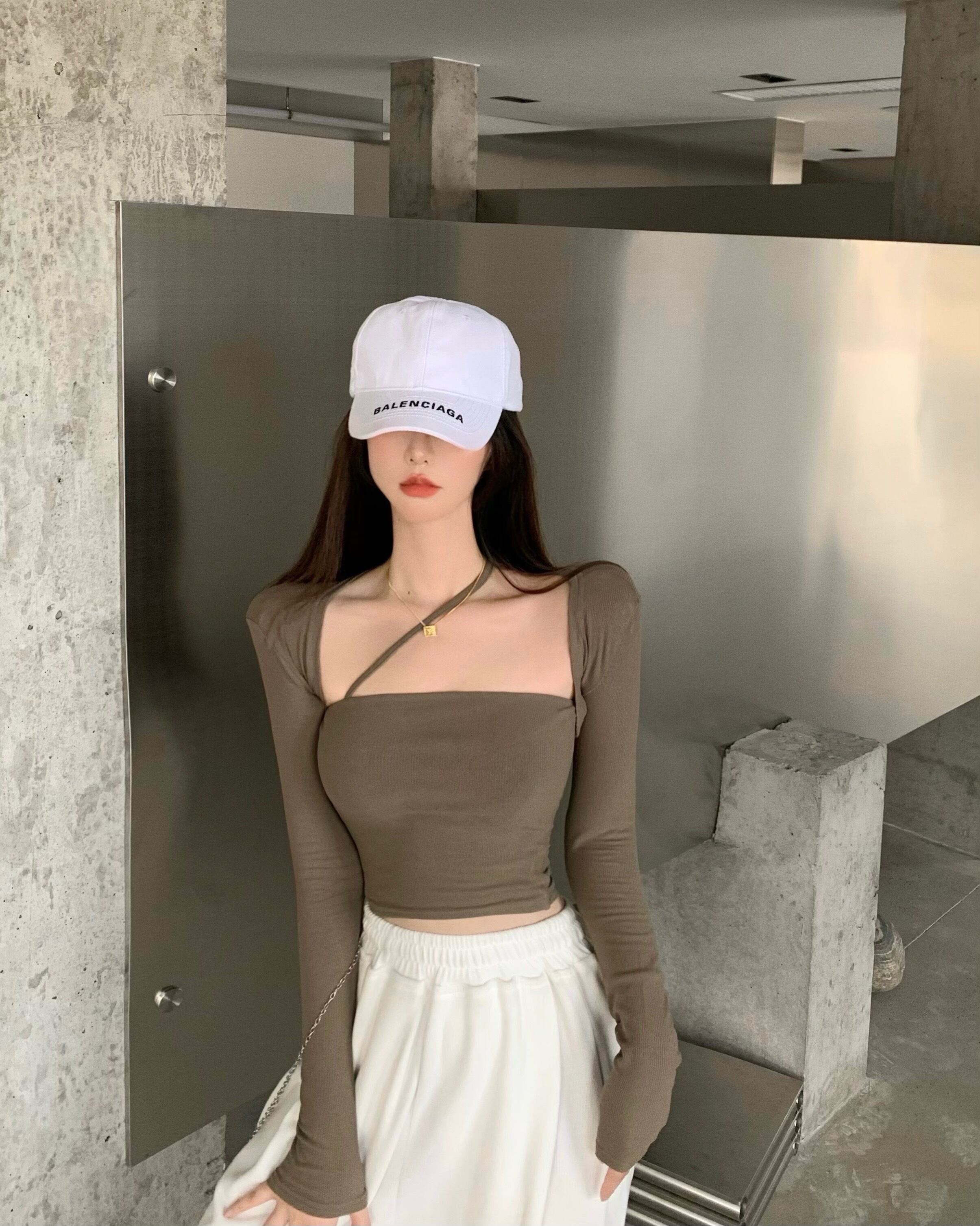 スプリングオータムシャツショートソリッド カラートップス レディース ロング 春物 秋物 Tシャツ ソリッドカラー スクウェア Xiaofeijia35143612502
