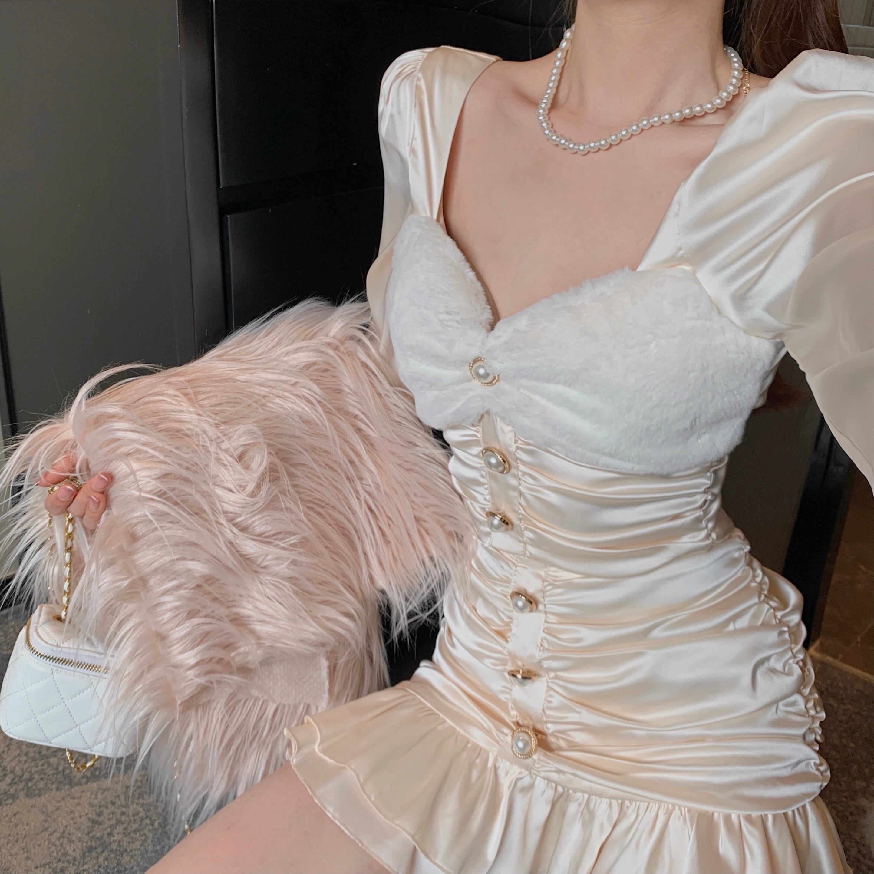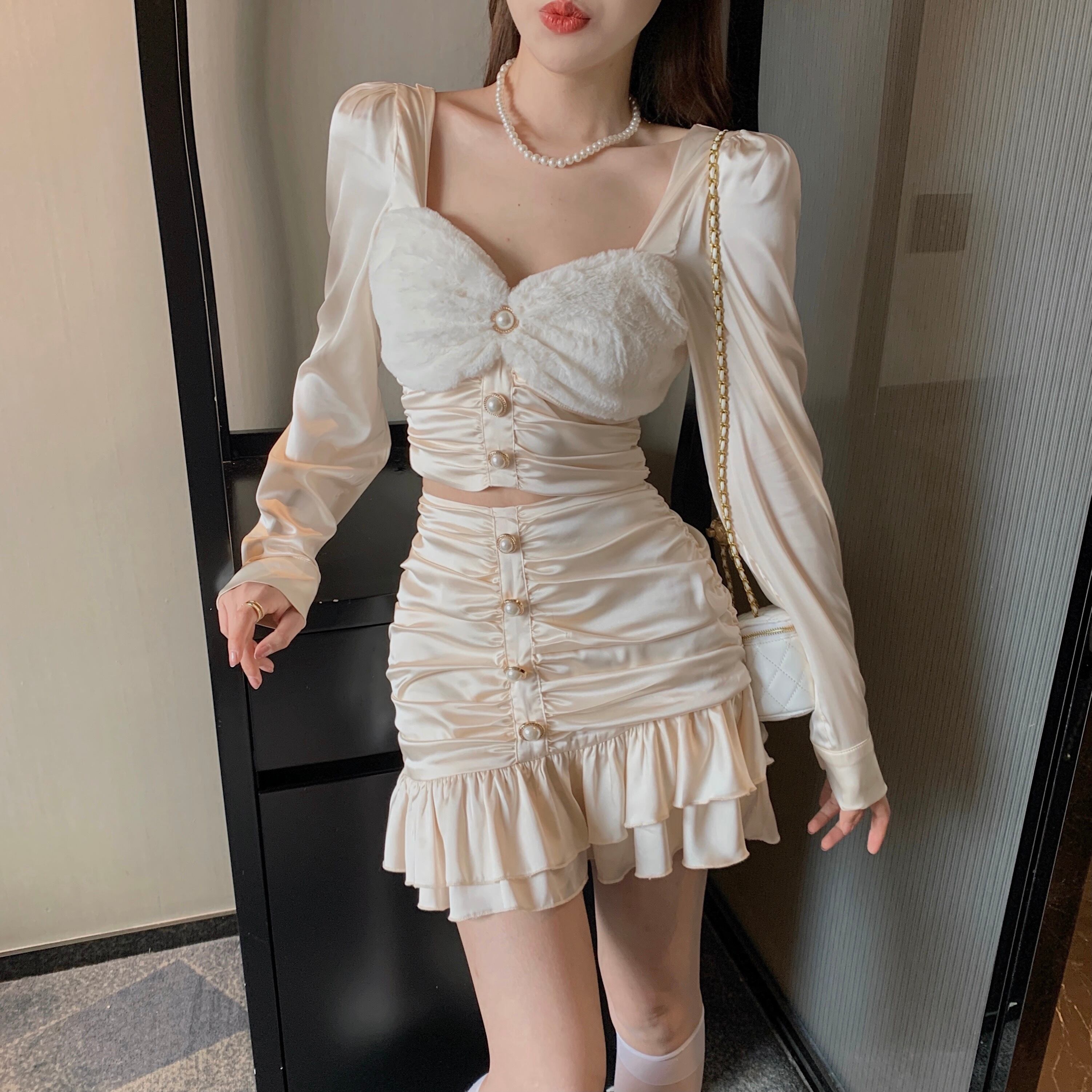 オータムスカート ショートトップス プリーツ ロング 秋物 ステッチ Xiaofeijia4148856282