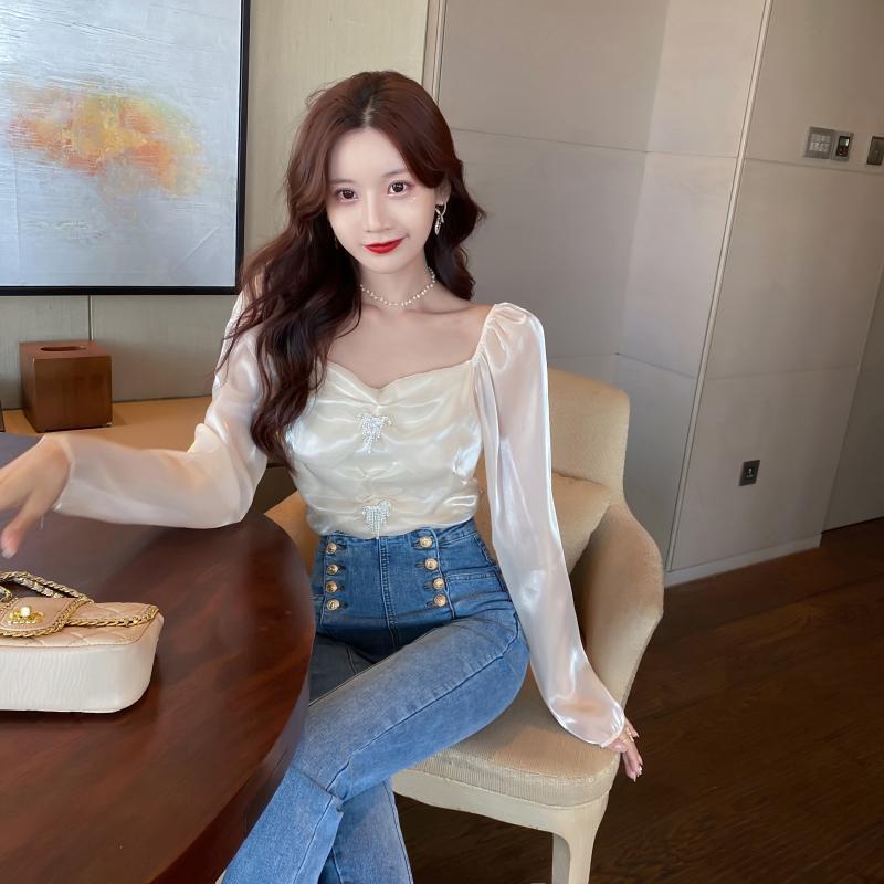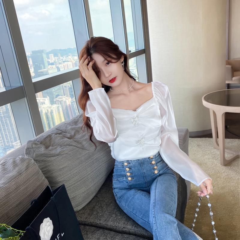シャツ オータムリボンプリーツトップス ロング 秋物 Xiaofeijia28555019700