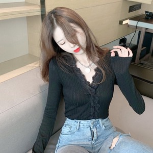 レースVネックTシャツ シャツ スリム ロング ステッチ Xiaofeijia142801123
