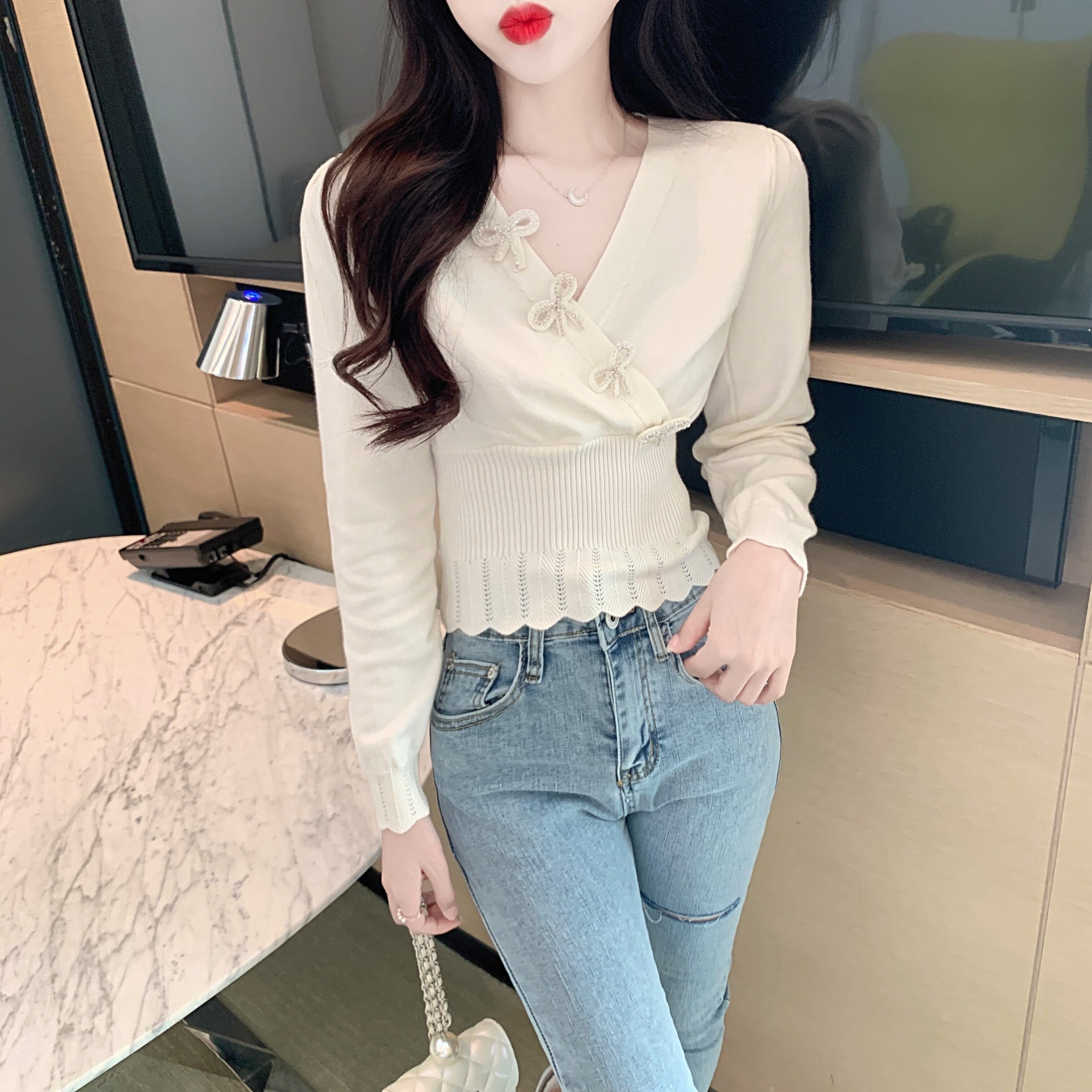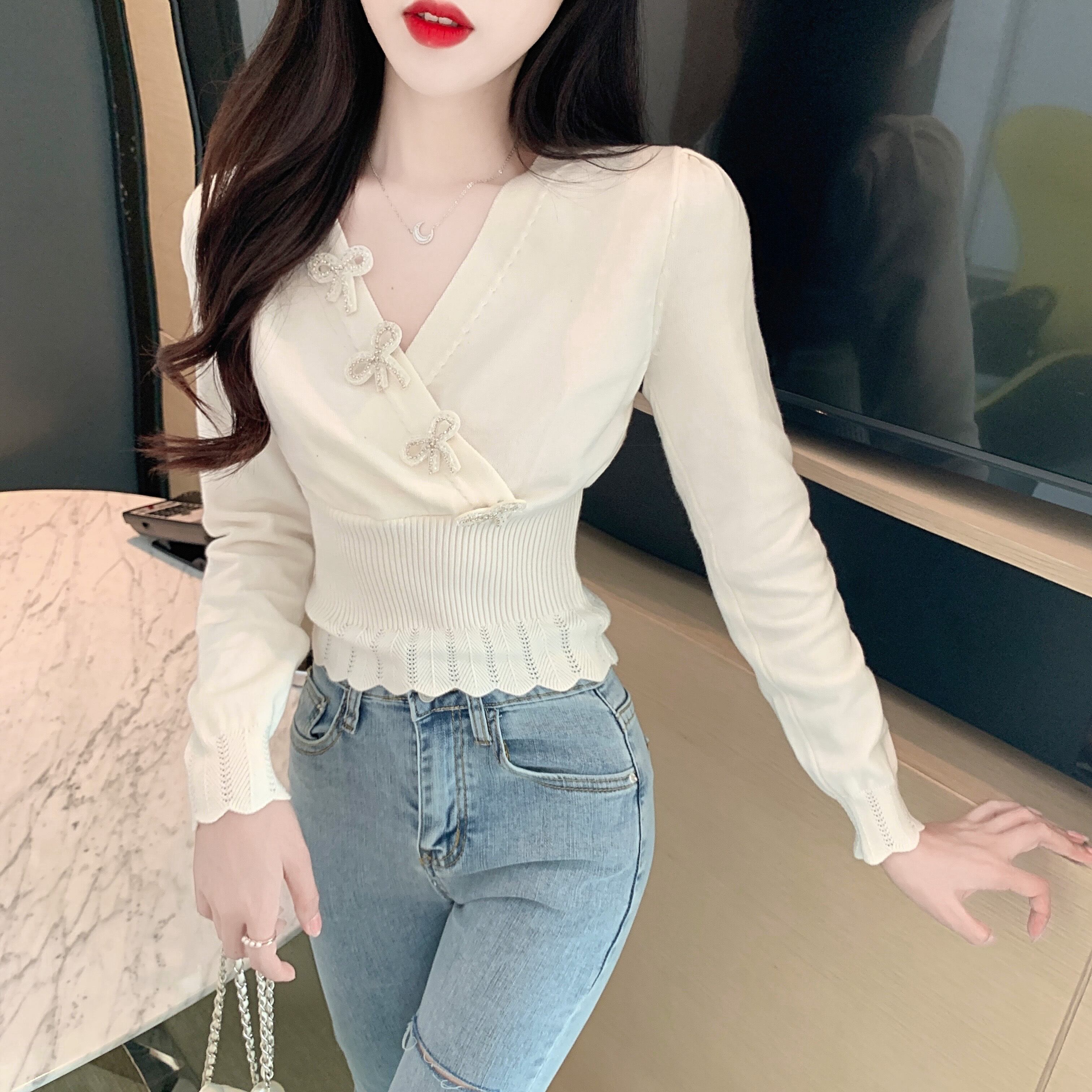 リボンクロスVネックウェストショートセーター 大人ガーリー スウィート キュート カジュアル Xiaofeijia14347332865