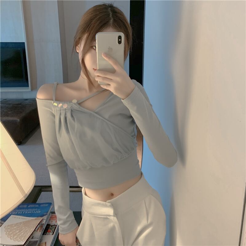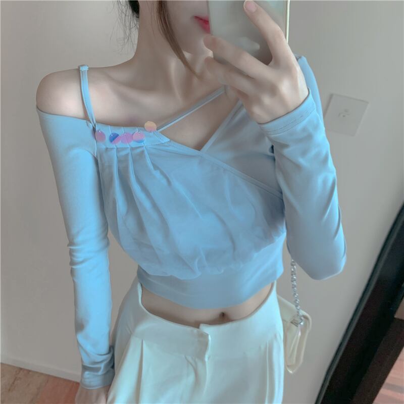 ブルーメッシュTシャツ スリムクロップトップ トップス Xiaofeijia69109697359