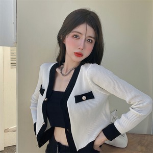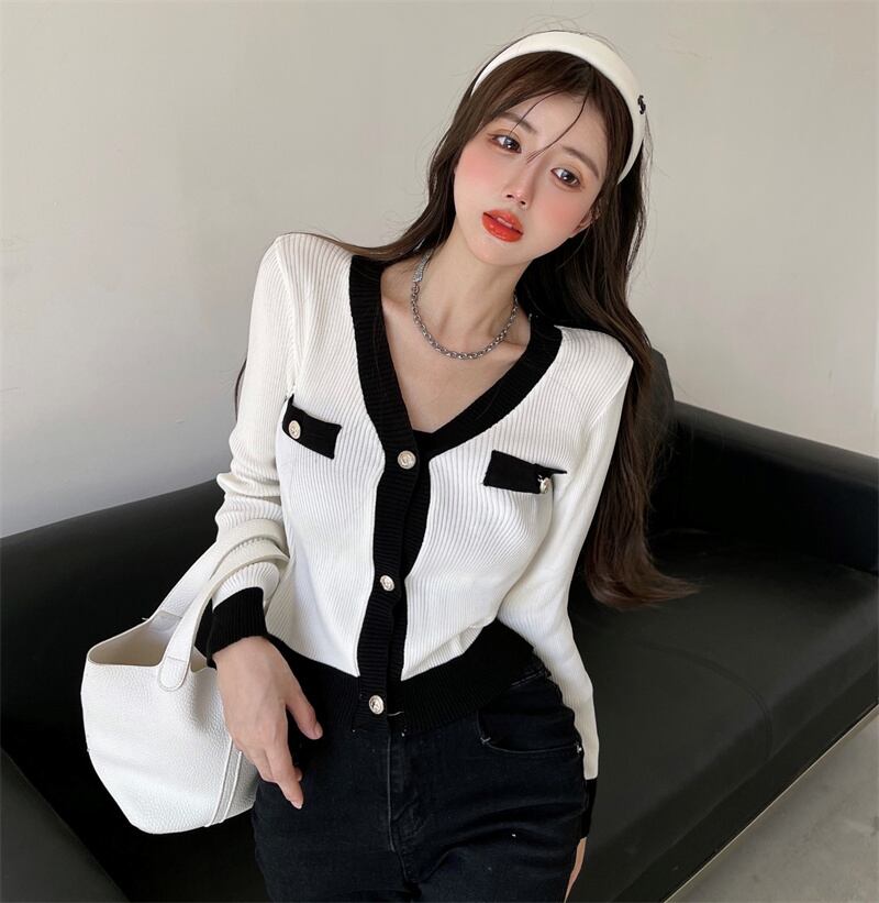Vネックメタルバックルカラーカーディガントップス Xiaofeijia19491270510