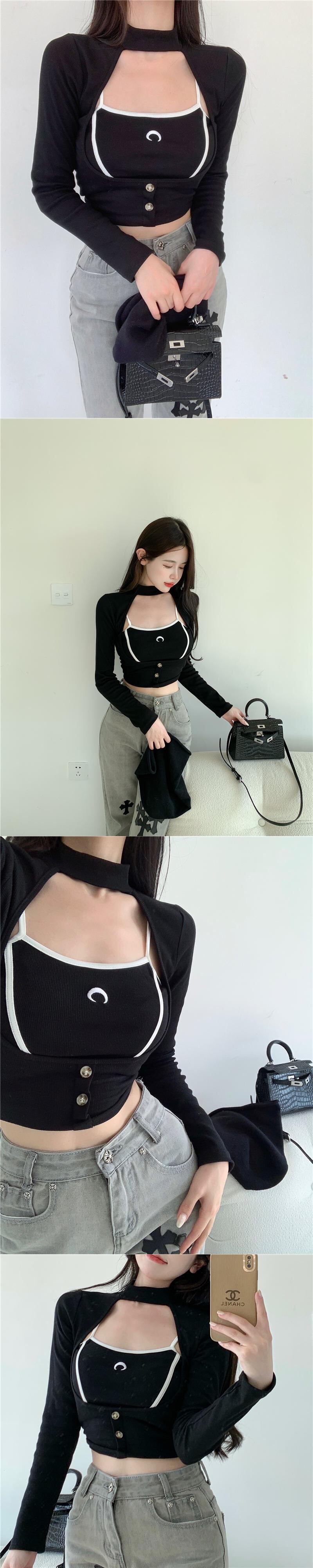ショートハイウェストTシャツ トップス ロング レッド 刺繍 Xiaofeijia62749763515