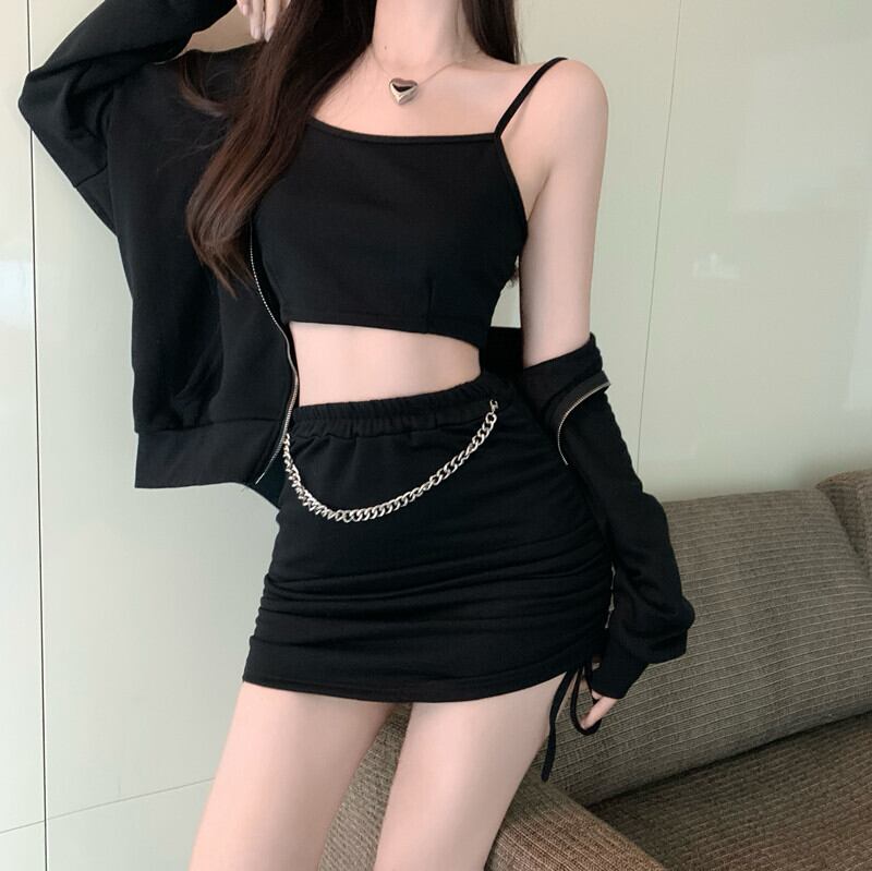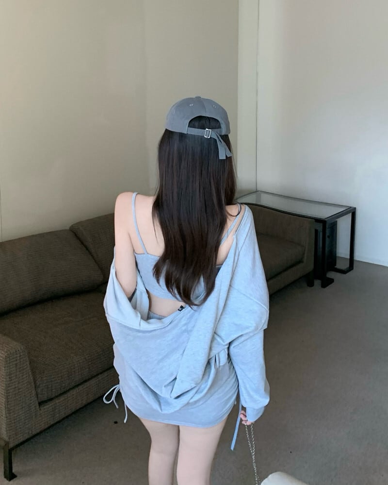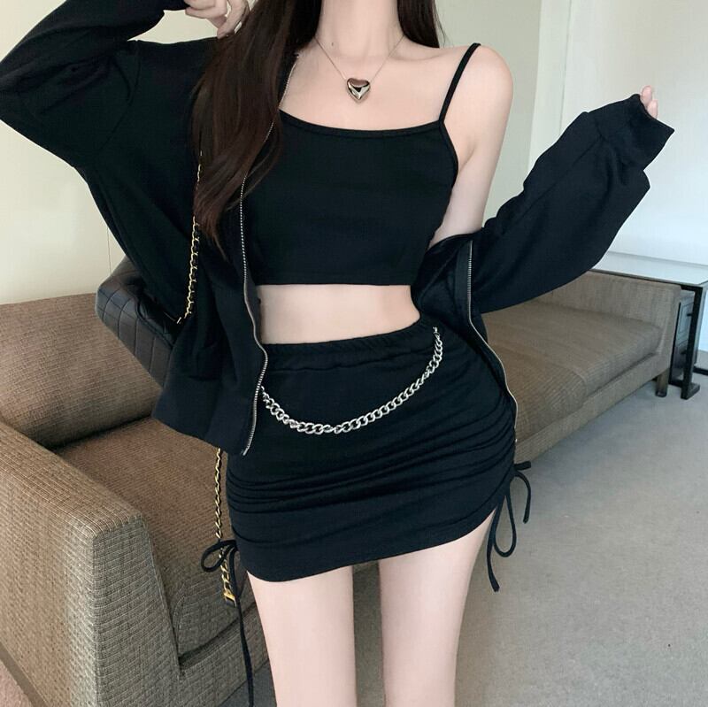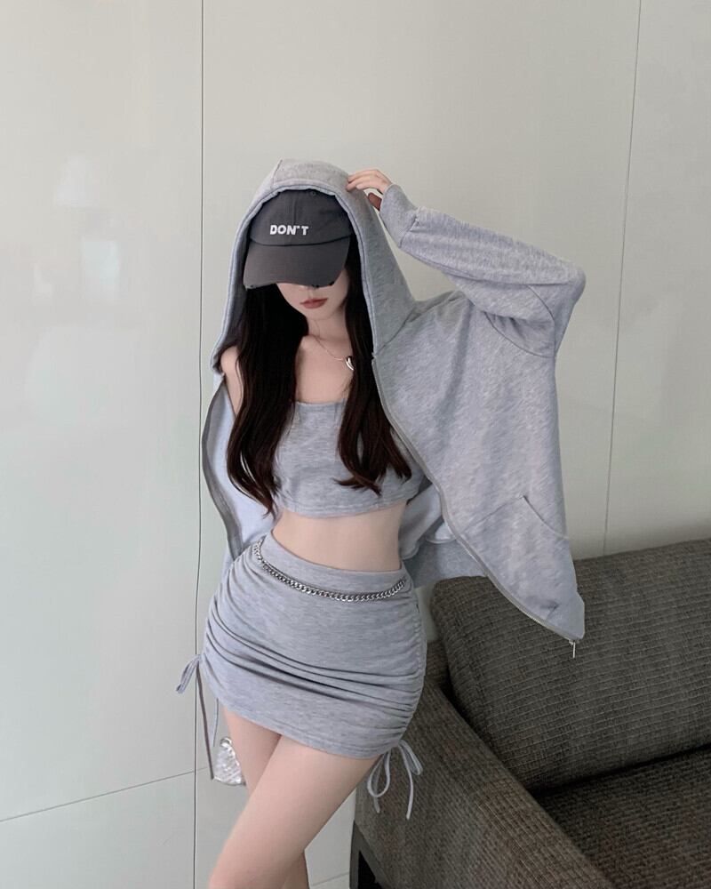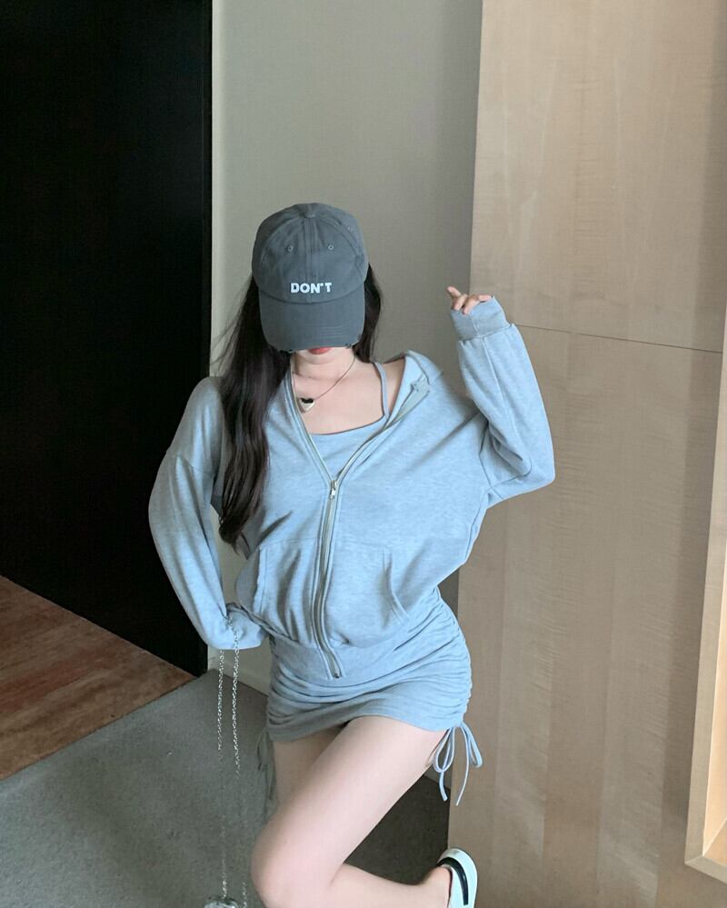 フードセーター コート ハイウェストウェストギャザースカート グレーオータム 秋物 Xiaofeijia22850653758