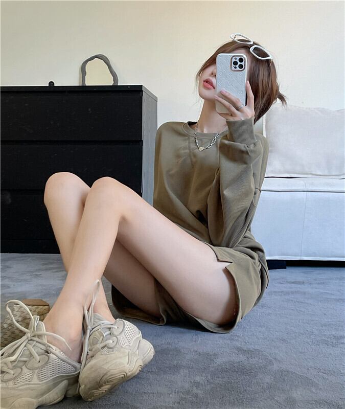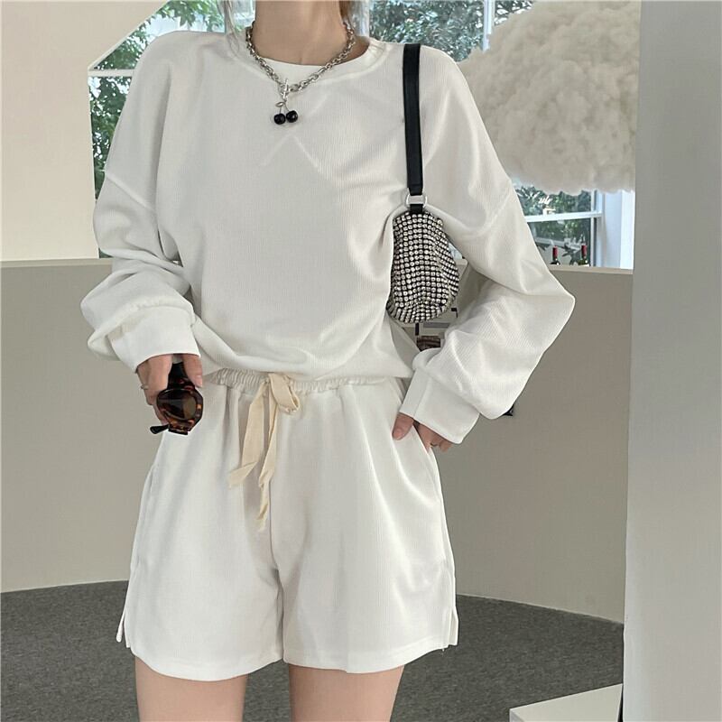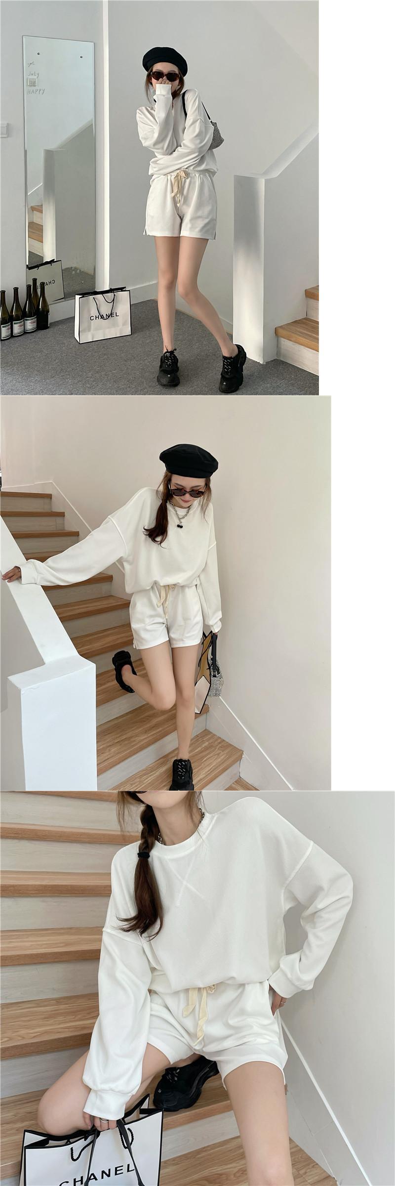 ギャザーショーツ ルーズソリッド カラープルオーバー セーター ブルマー ソリッドカラー Xiaofeijia12457548538