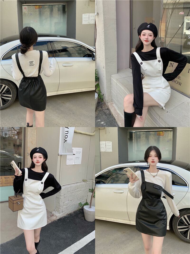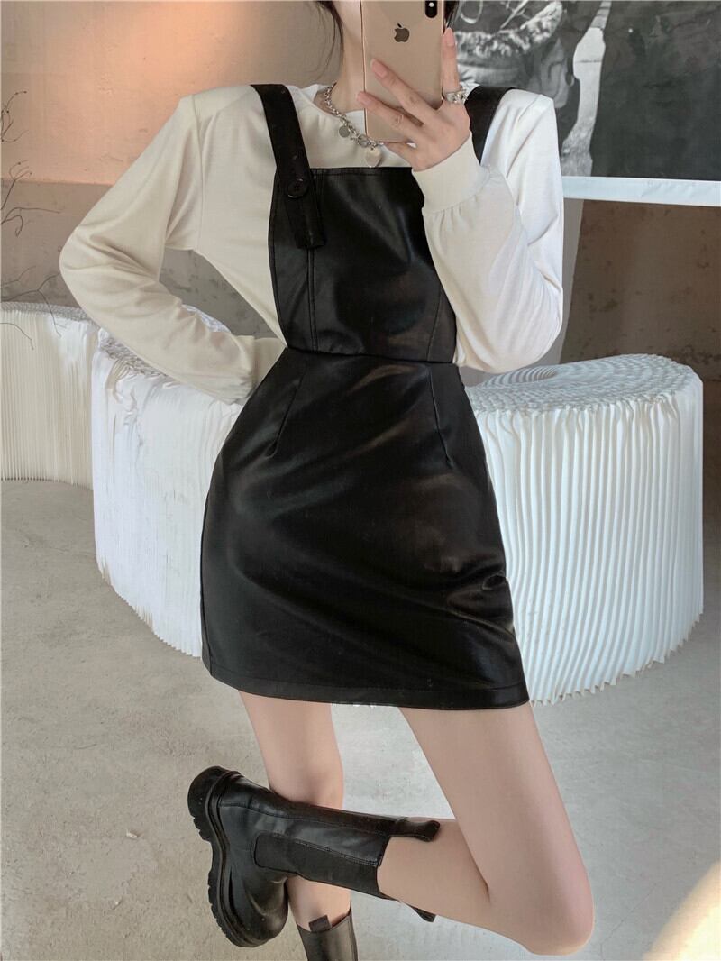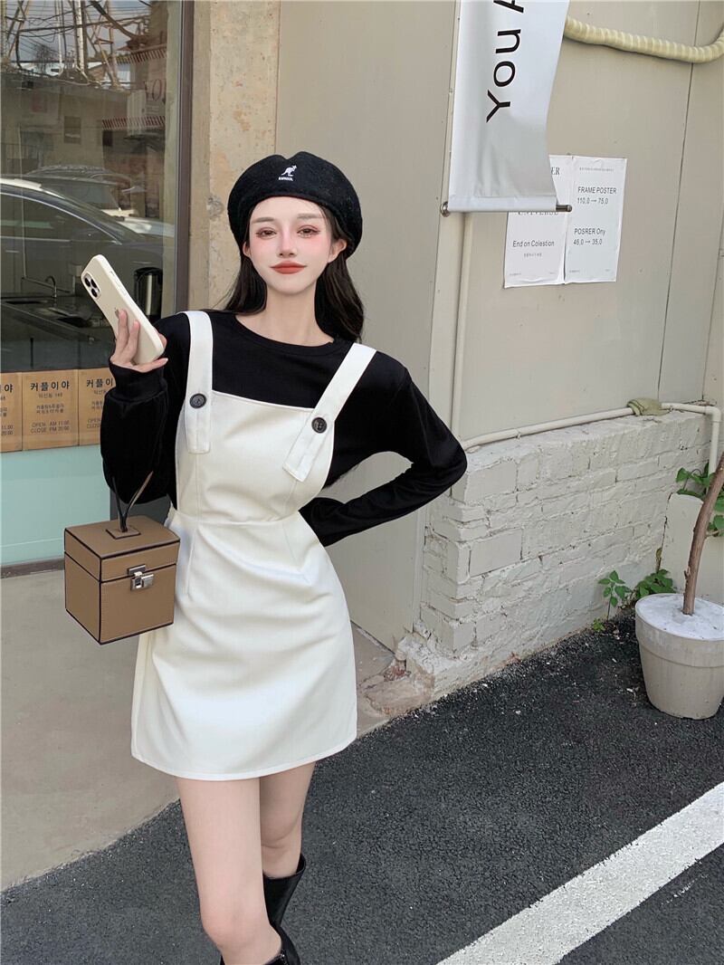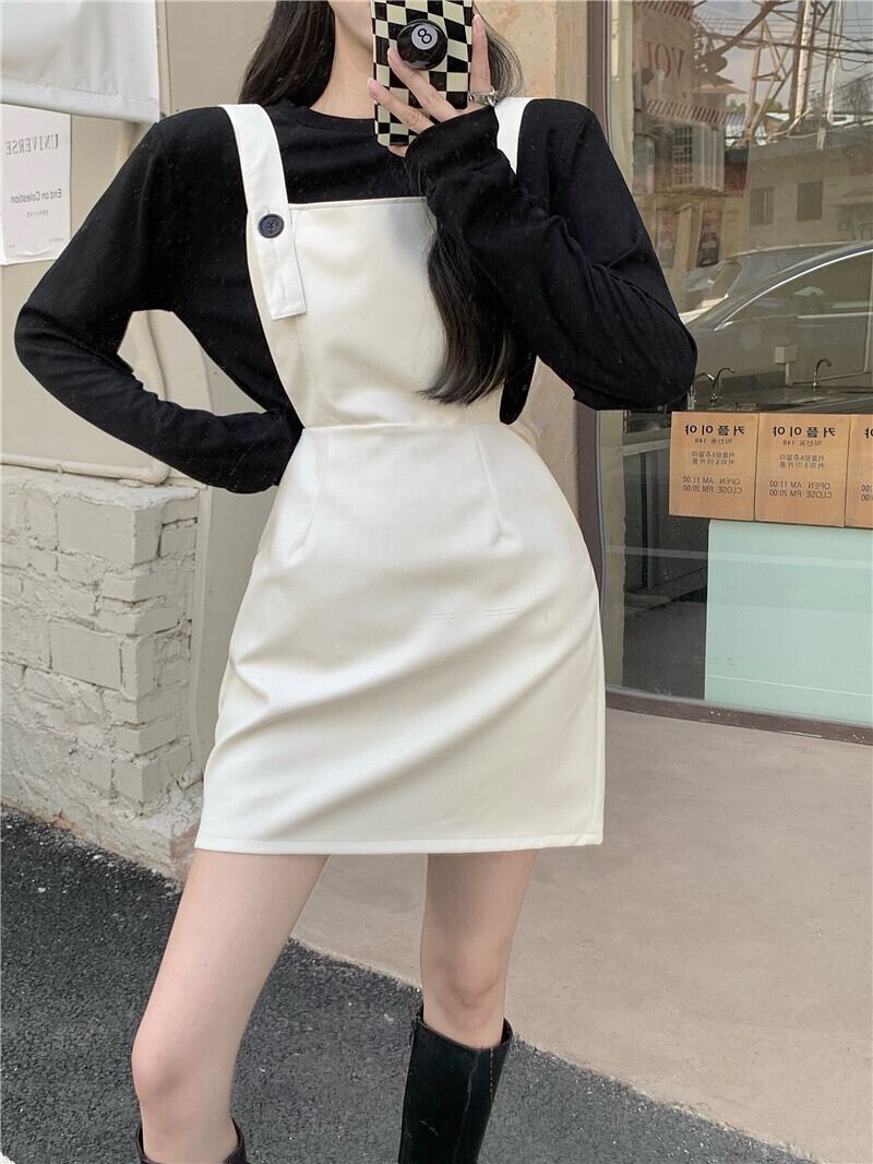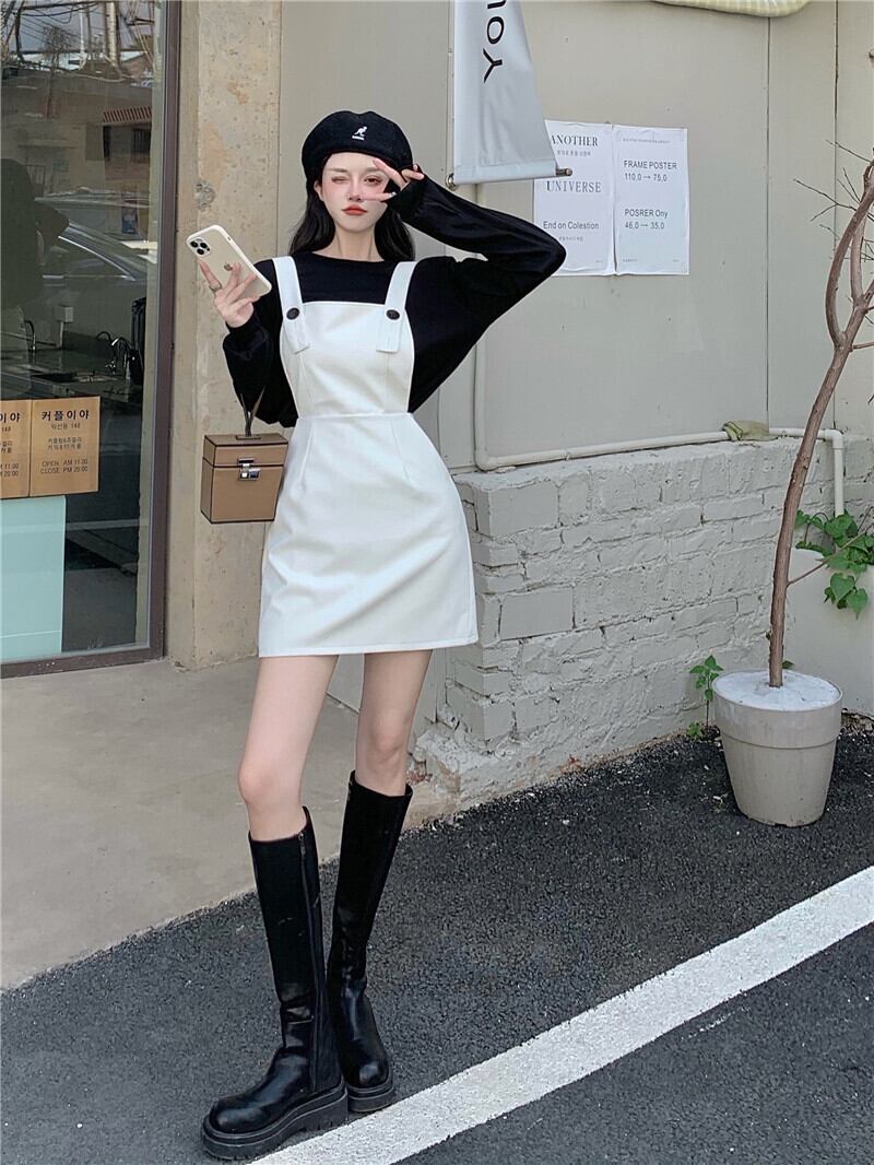 スカート スプリングオータムホワイトウェストドレス スタイルレザーショートTシャツ 春物 秋物 Xiaofeijia54828137435