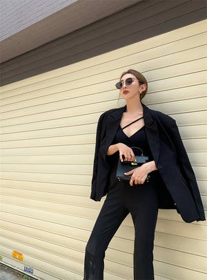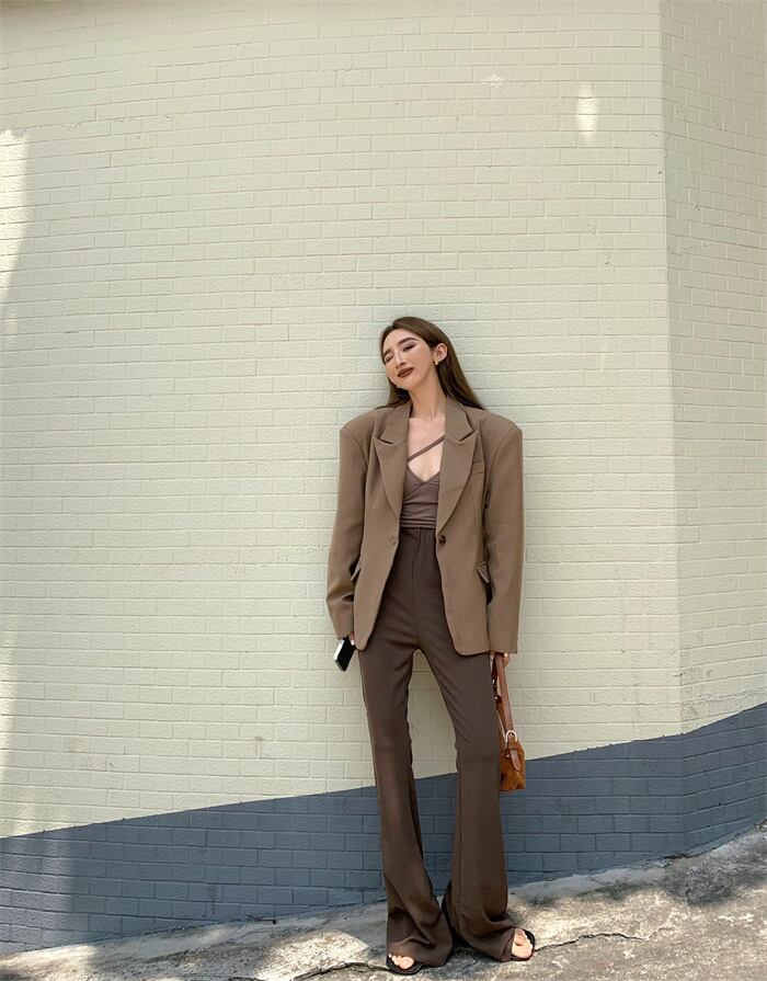 色:コーヒー色のスリング,ブラックサスペンダー,コーヒースーツ,黒いスーツ,コーヒーカラーパンツ,黒いズボン