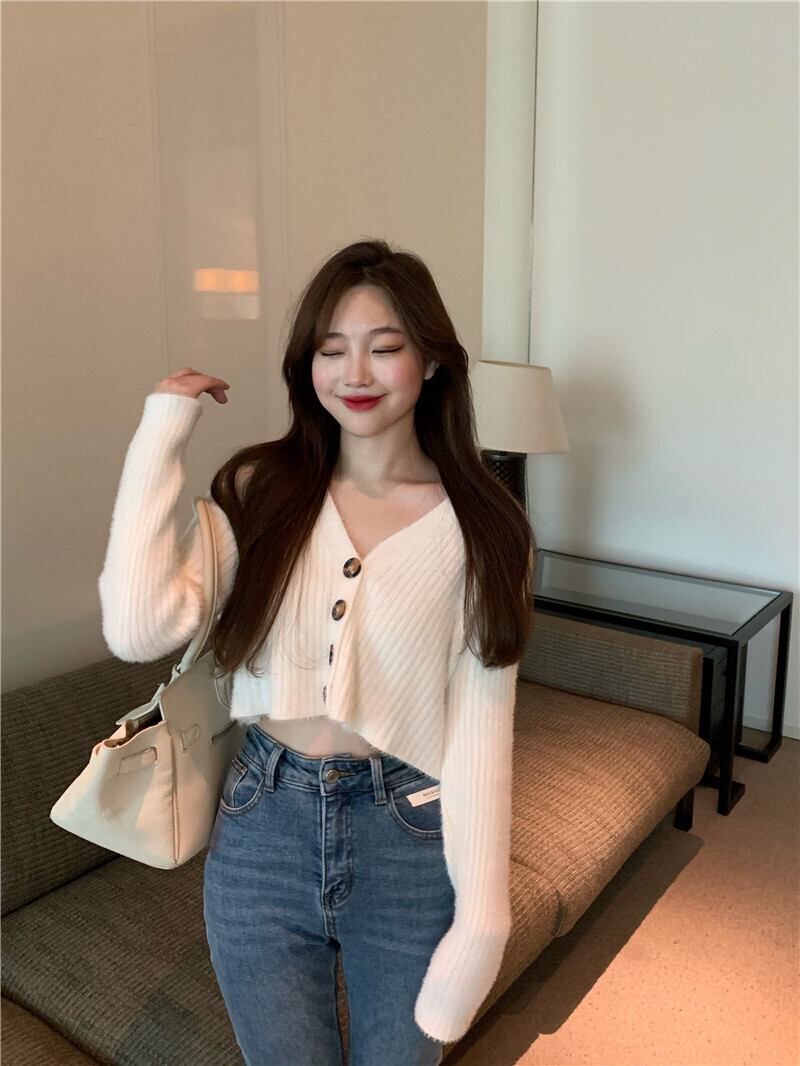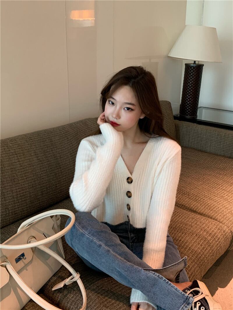 Vネックフェイクウールセーター コート ファー Xiaofeijia67648735416