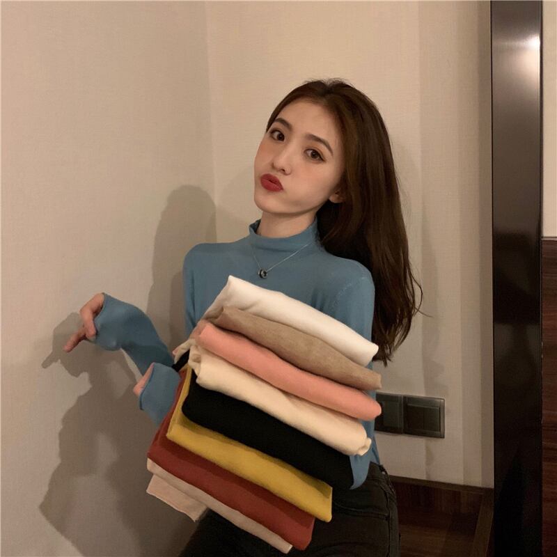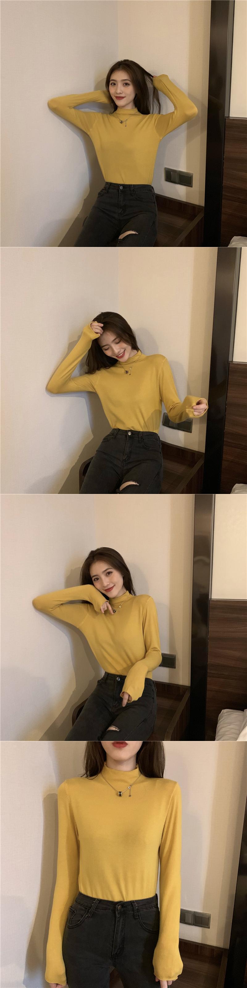 オータムウィンターベーシックソリッド カラーニットシャツ 秋物 冬物 ソリッドカラー Xiaofeijia97187802529
