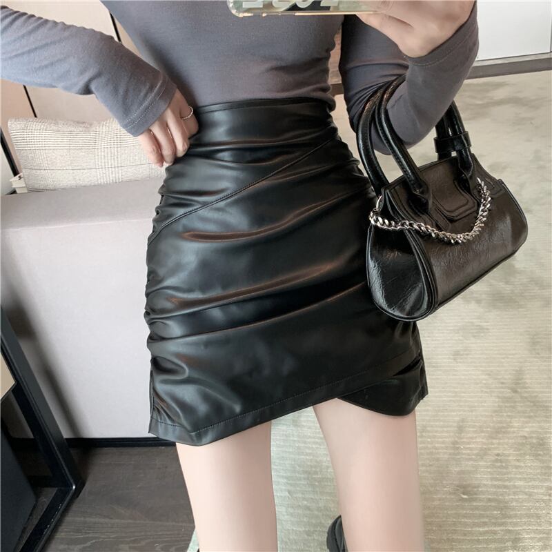 レザースカート Aラインハイウェストウェストオータムショート 秋物 Xiaofeijia9031635961