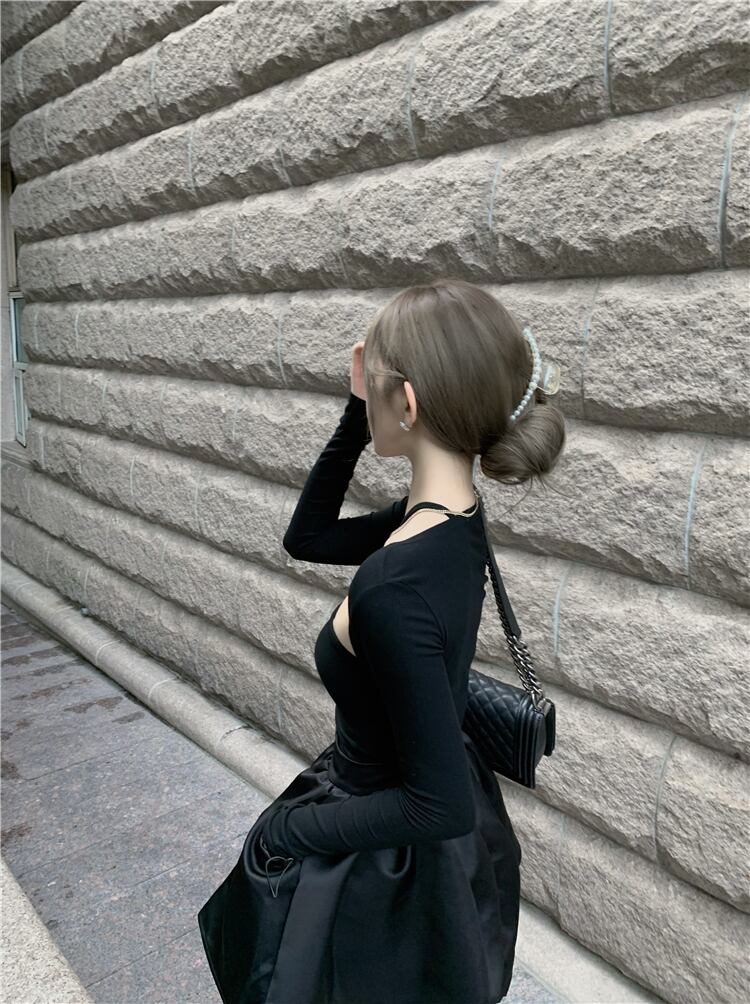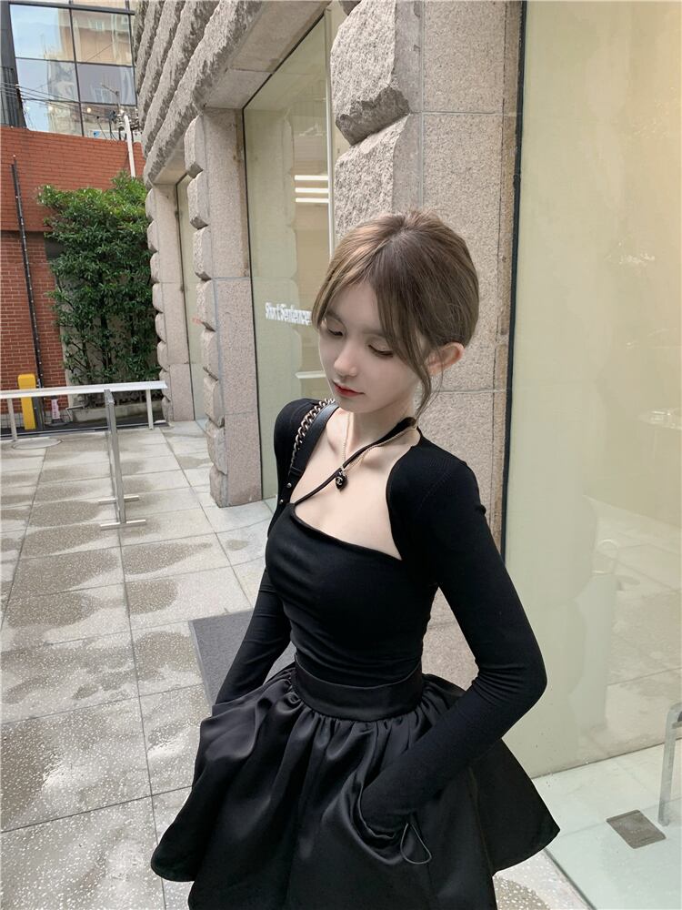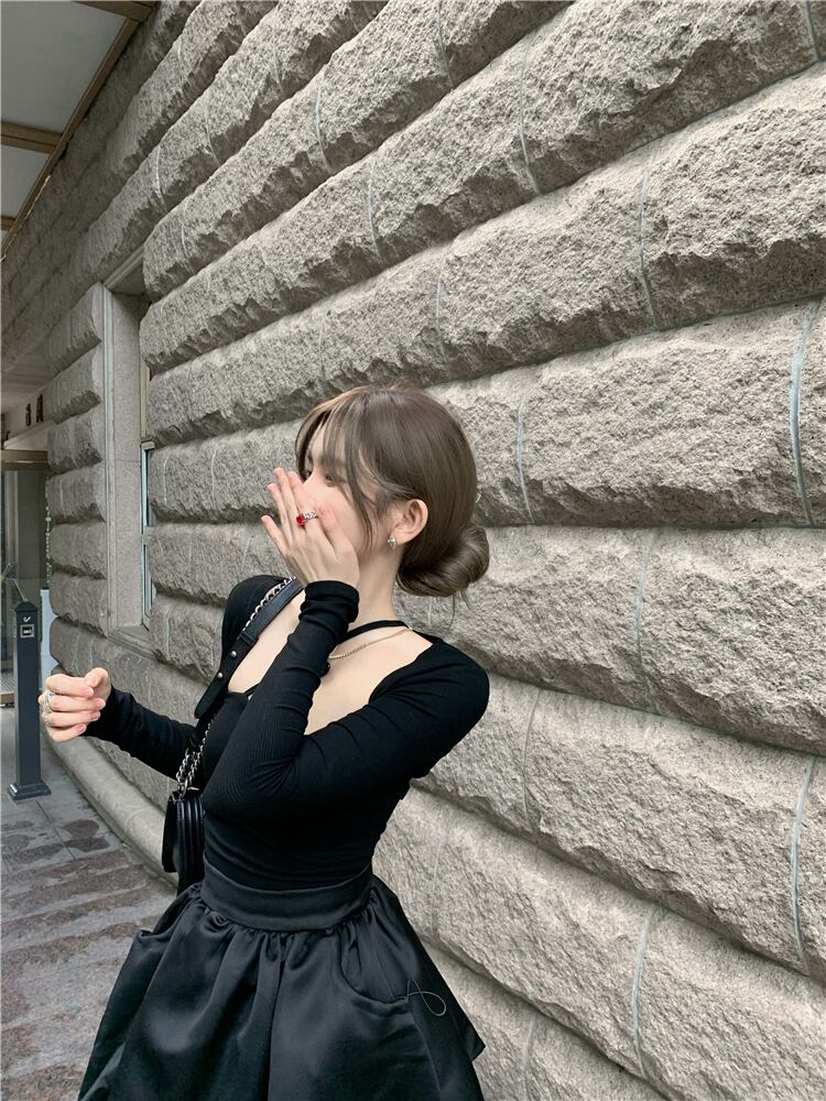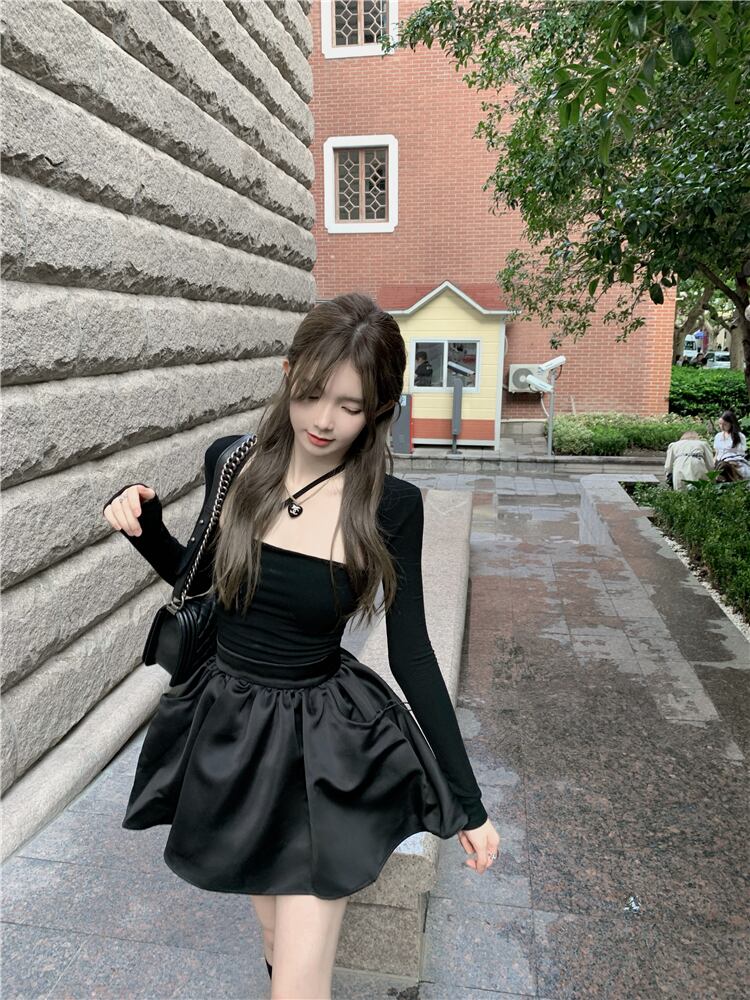 スカート ウェストスタイルブラックオータムAラインショート ふわふわ 秋物 Xiaofeijia25589730722