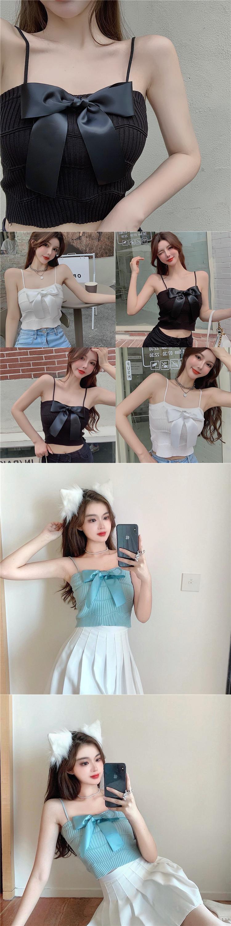 トップス サマーニットシャツ ノースリーブ リボン 夏物 Xiaofeijia12931167287