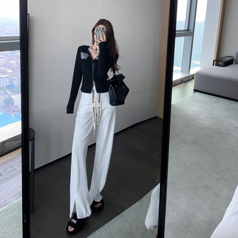 コート カジュアルパンツ ハイウェストレディースオータムホワイトロング 秋物 Xiaofeijia85064233380