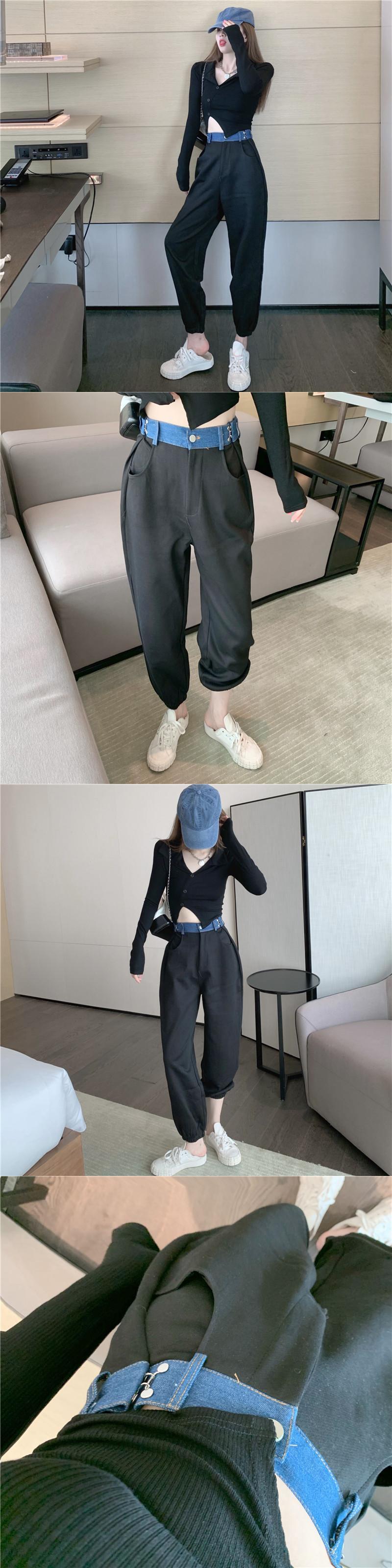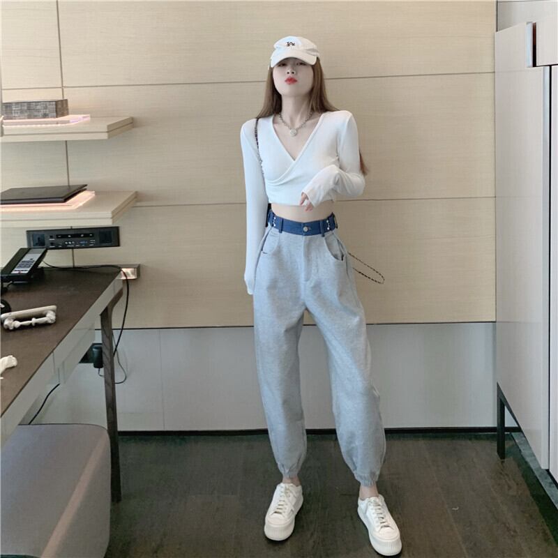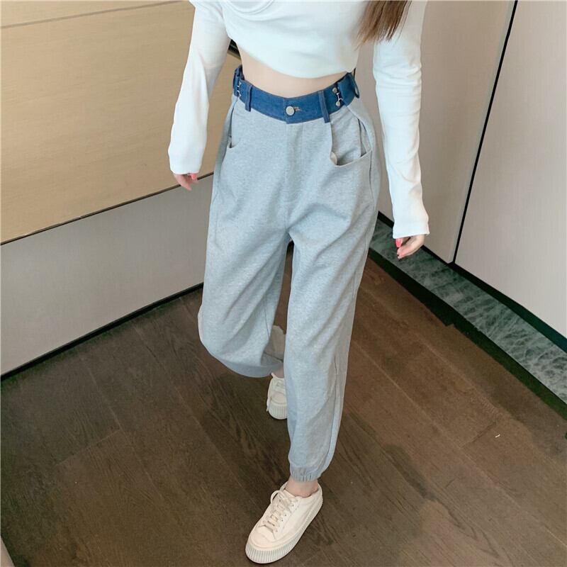 ギャザーパンツ ウェストバックルカジュアルハイウェストグレーオータム 秋物 アジャスタブル ステッチ Xiaofeijia14437077115